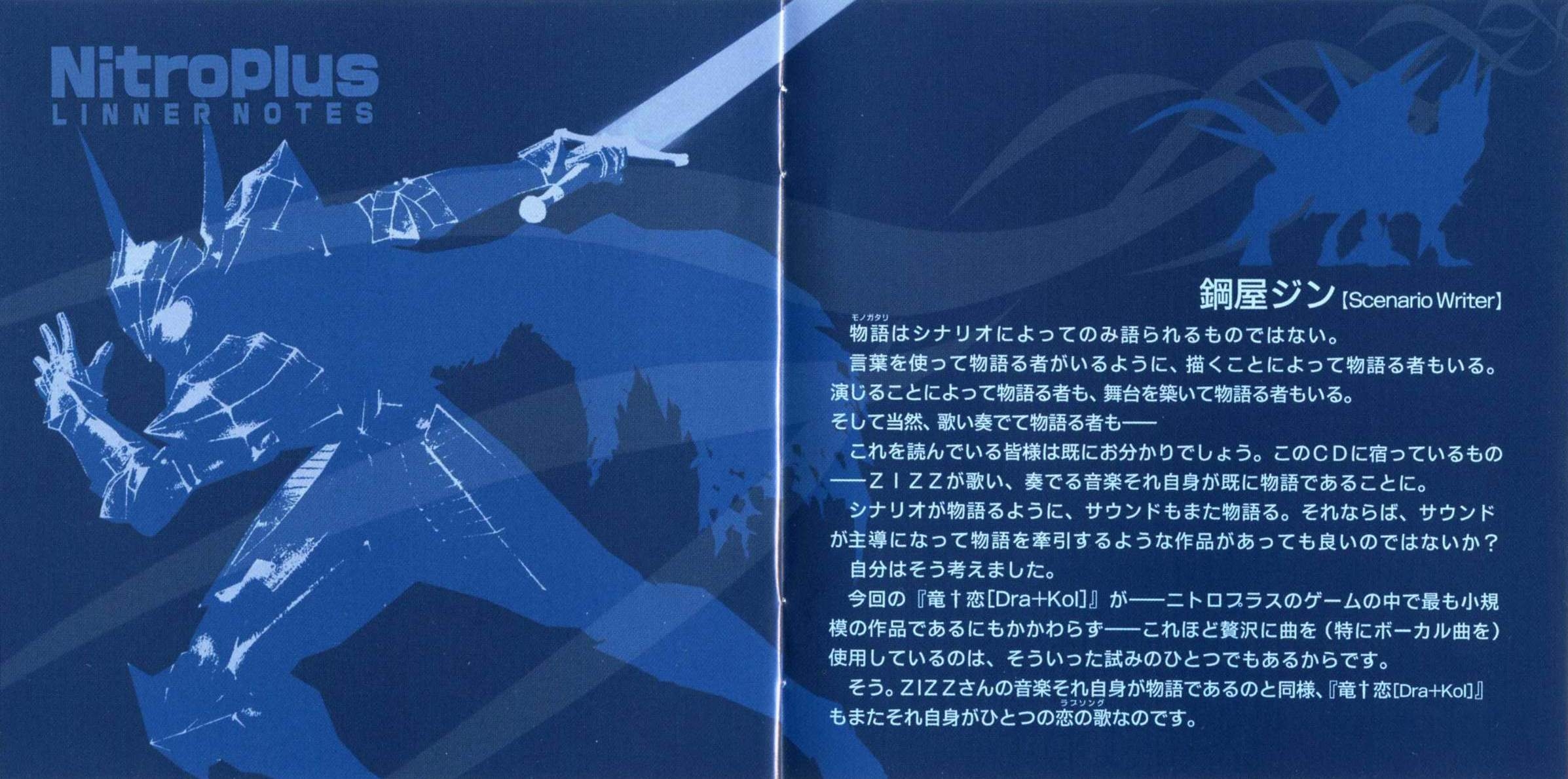 The soundtrack for Dra†KoI, the first of three adult games included in Nitroplus's "Sabato Nabe -Nitro Amusement Disc-."