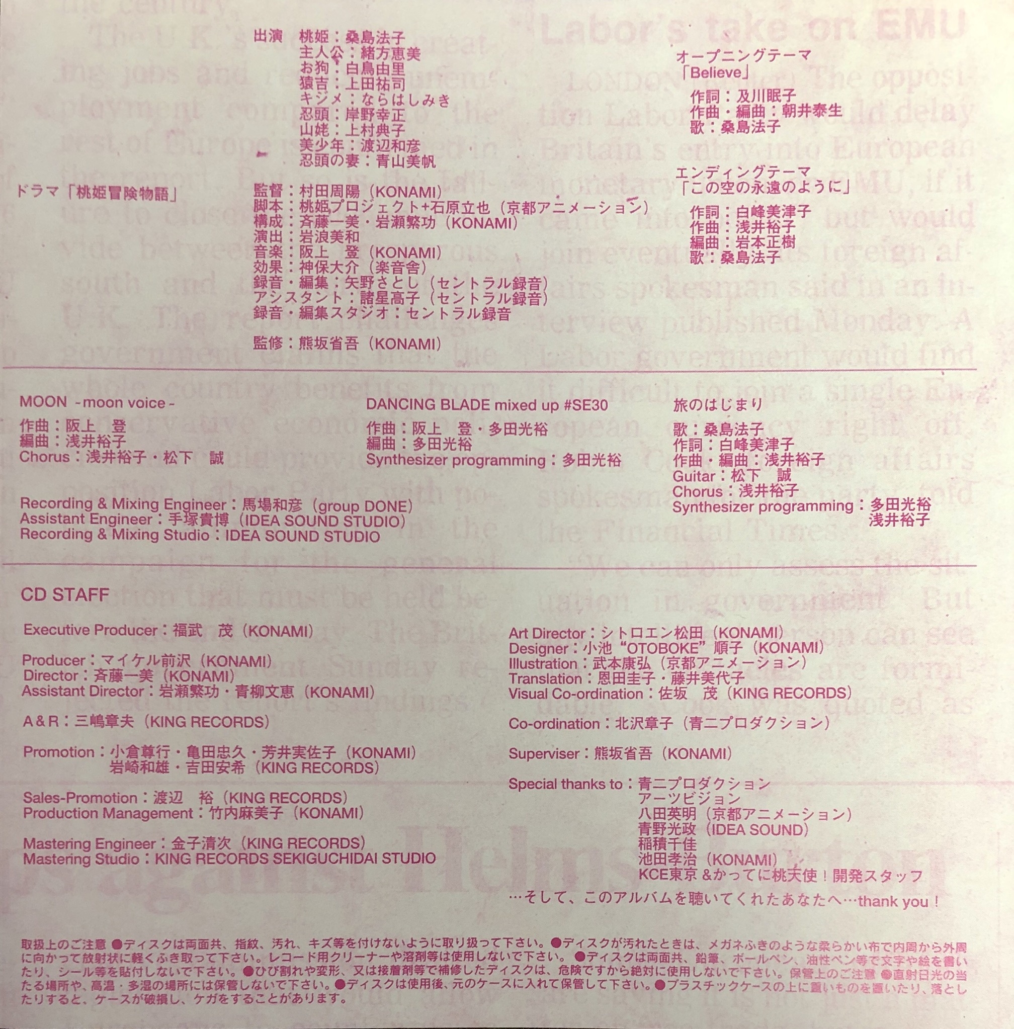 Promotion: Takayuki Ogura · Tadahisa Kameda · Misako Yoshii (KONAMI), Kazuo Iwasaki · Aki Yoshida (KING RECORDS)