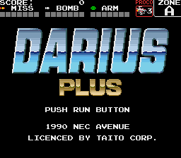 Darius Plus is a shoot em up video game released in 1990 for the PC Engine. It is a port of Darius, and a "light" version of Super Darius that was released earlier that year. It is mostly the same as the original game, but with music and sound rearranged for the PC Engine's sound hardware, a lower number of bosses, and certain bug fixes. Plus is unusual for being the only PC Engine game to also have support for the SuperGrafx; the SG can handle sprites better than the normal PCE, so a lot of flickering is removed.