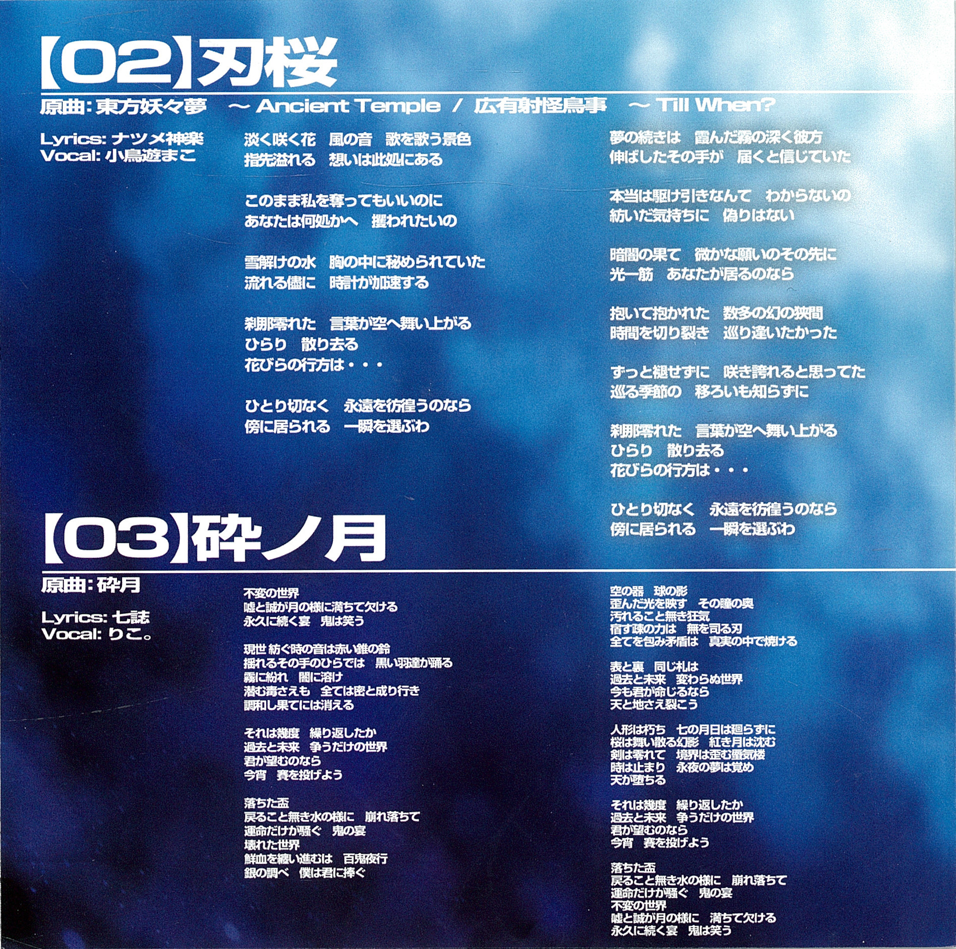 3. | 砕ノ月 | 4:29 | 8.62 MB | 34.17 MB | get_app | playlist_add |
