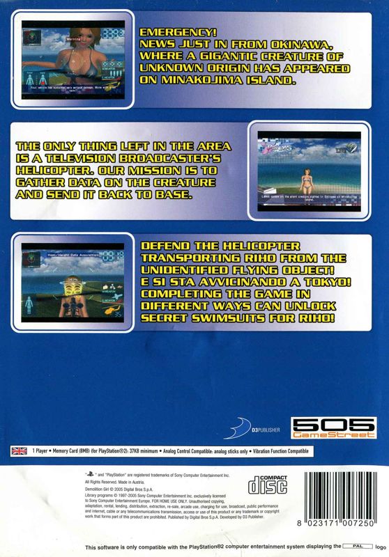 You take on the role of a Helicopter, Jet and Tank while Riho rampages around Japan causing destruction and mayhem. Gameplay varies from measuring Riho, chasing her down a highway and protecting her sleeping form from alien squids while flying over the ocean.