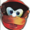 Features a custom-shaped disc (like Diddy Kong's head). Warning reads: