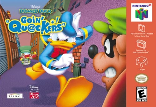 Goin' Quackers begins with Donald Duck, Gladstone Gander and Gyro Gearloose watching television reporter Daisy Duck discovering the mysterious temple of the evil magician Merlock. As she tells the story, she is kidnapped by Merlock. His arch-rival Gladstone sets out to find her before Donald, who decides to use Gyro's new invention, the "Tubal Teleport System", to track down Merlock and Daisy. However, the machine doesn't have enough power to get there and for it to reach Merlock's lair, Donald must go on a journey to plant an antenna at certain locations in order to boost the machine's power. Along the way, he must compete with Gladstone, reverse the spells that Merlock put on Huey, Dewey, and Louie's toys, and defeat several bosses, including the Beagle Boys and Magica De Spell. In the end, Donald is able to locate Merlock, he defeats him and rescues Daisy. The temple collapses, but Gyro is able to teleport them back to his lab, where Donald receives a good kiss from Daisy for rescuing her.