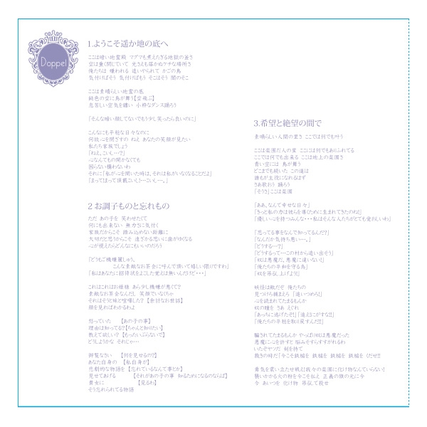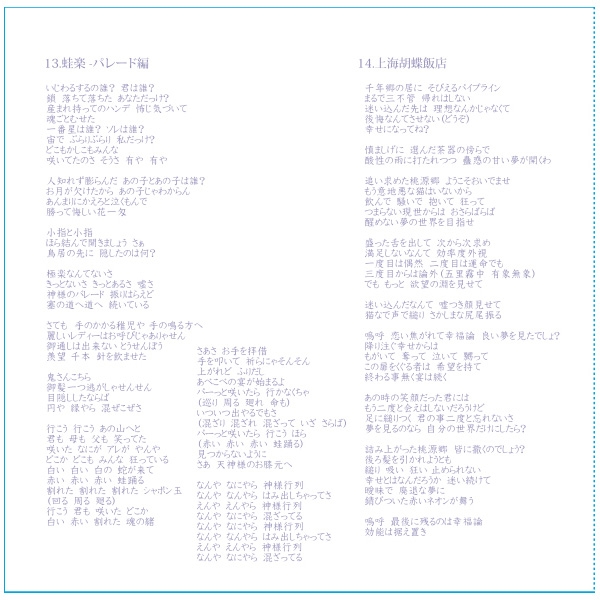 Lyrics: azuki (tr.musical,9,10,11,12,14,15), kaztora (tr.musical,13)