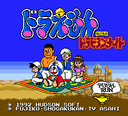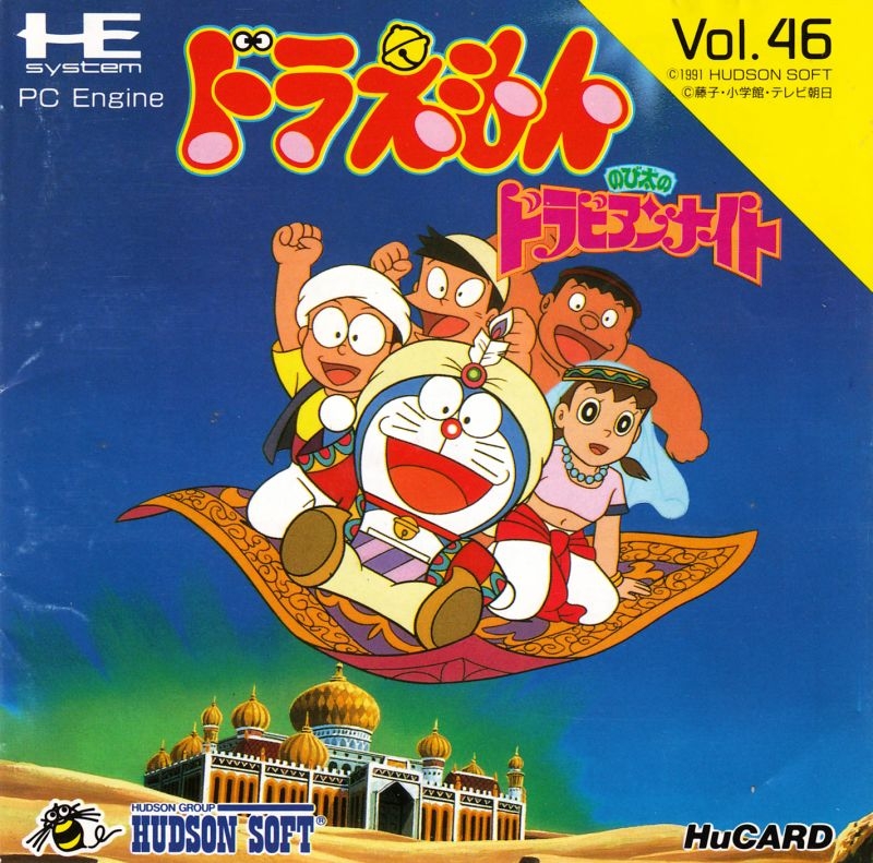 Doraemon Nobita no Dorabian Nights is an action game developed by Now Production and published by Hudson Soft in 1991 for the PC Engine and in 1992 for the PC Engine Super CD-ROM². It was based on the Doraemon: Nobita's Dorabian Nights movie.