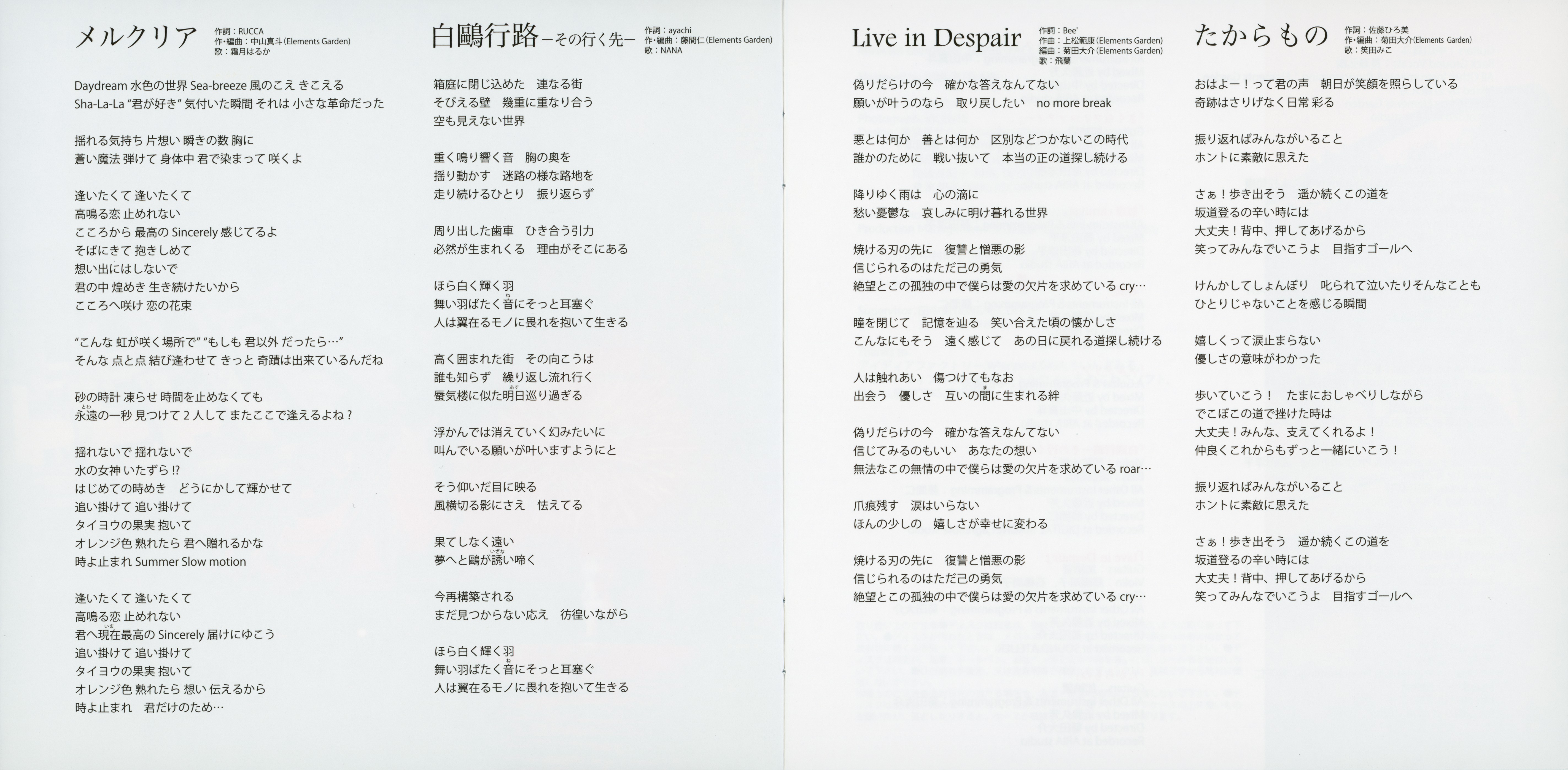 Lyrics, Compose, Arrange: Elements Garden