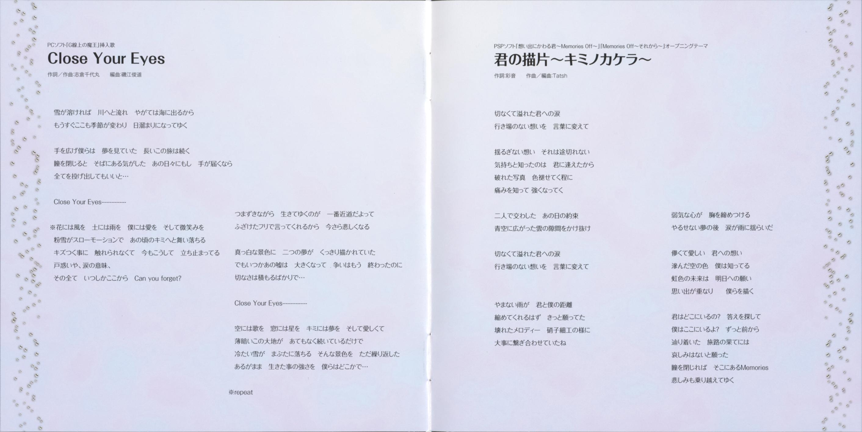 | 12. | 君の描片~キミノカケラ~ | 4:16 | 8.34 MB | 30.25 MB | get_app | playlist_add |