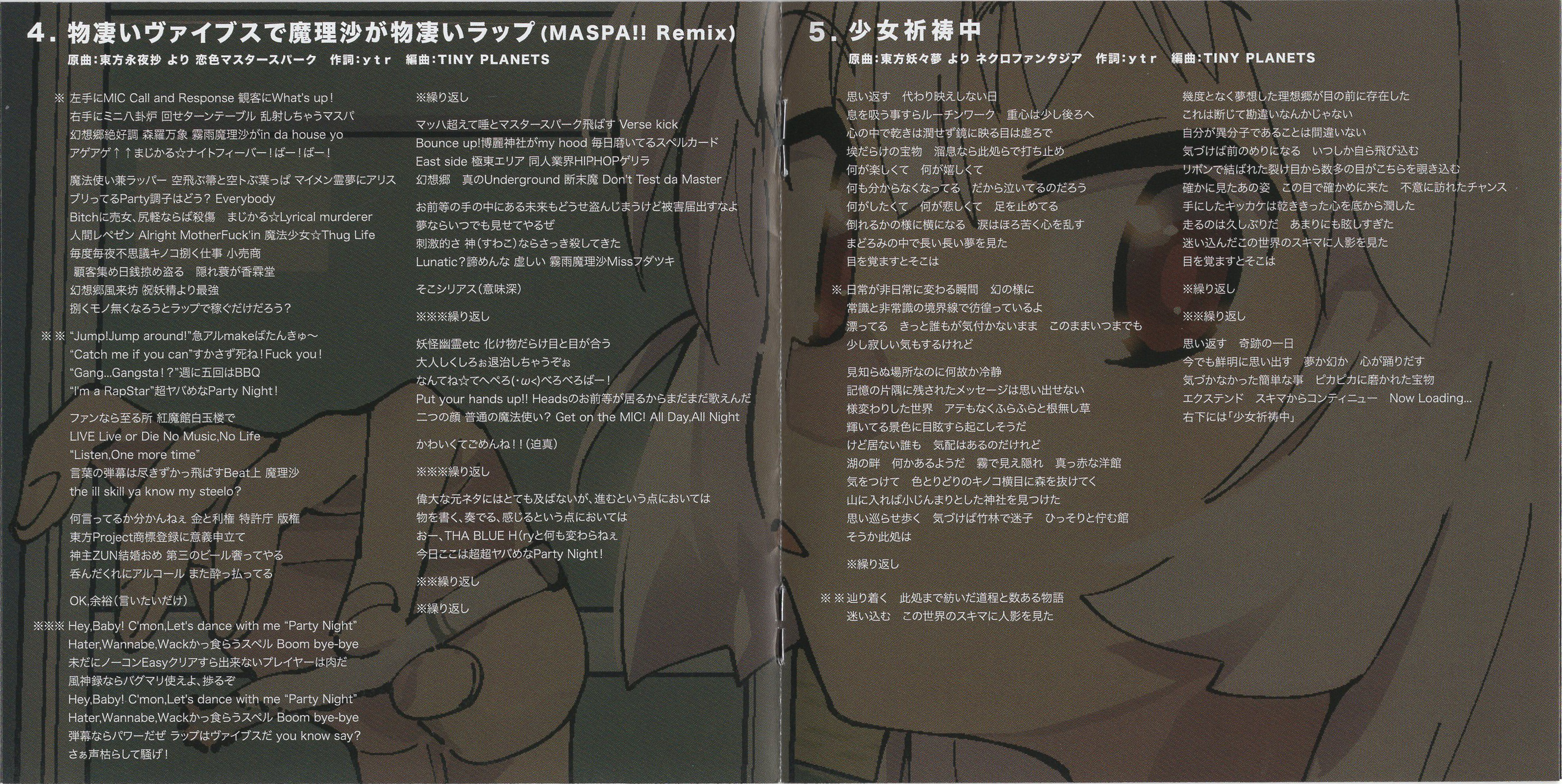 4. | 物凄いヴァイブスで魔理沙が物凄いラップ (MASPA!! Remix) | 4:14 | 8.03 MB | 34.23 MB | get_app | playlist_add |