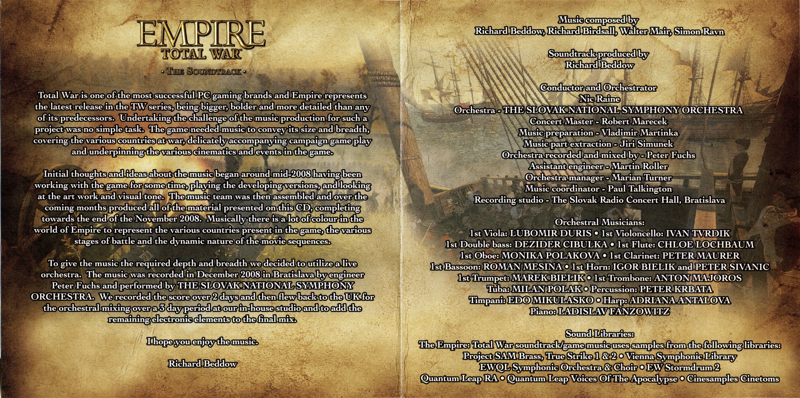 The Empire: Total War soundtrack/game music uses samples from the following libraries: