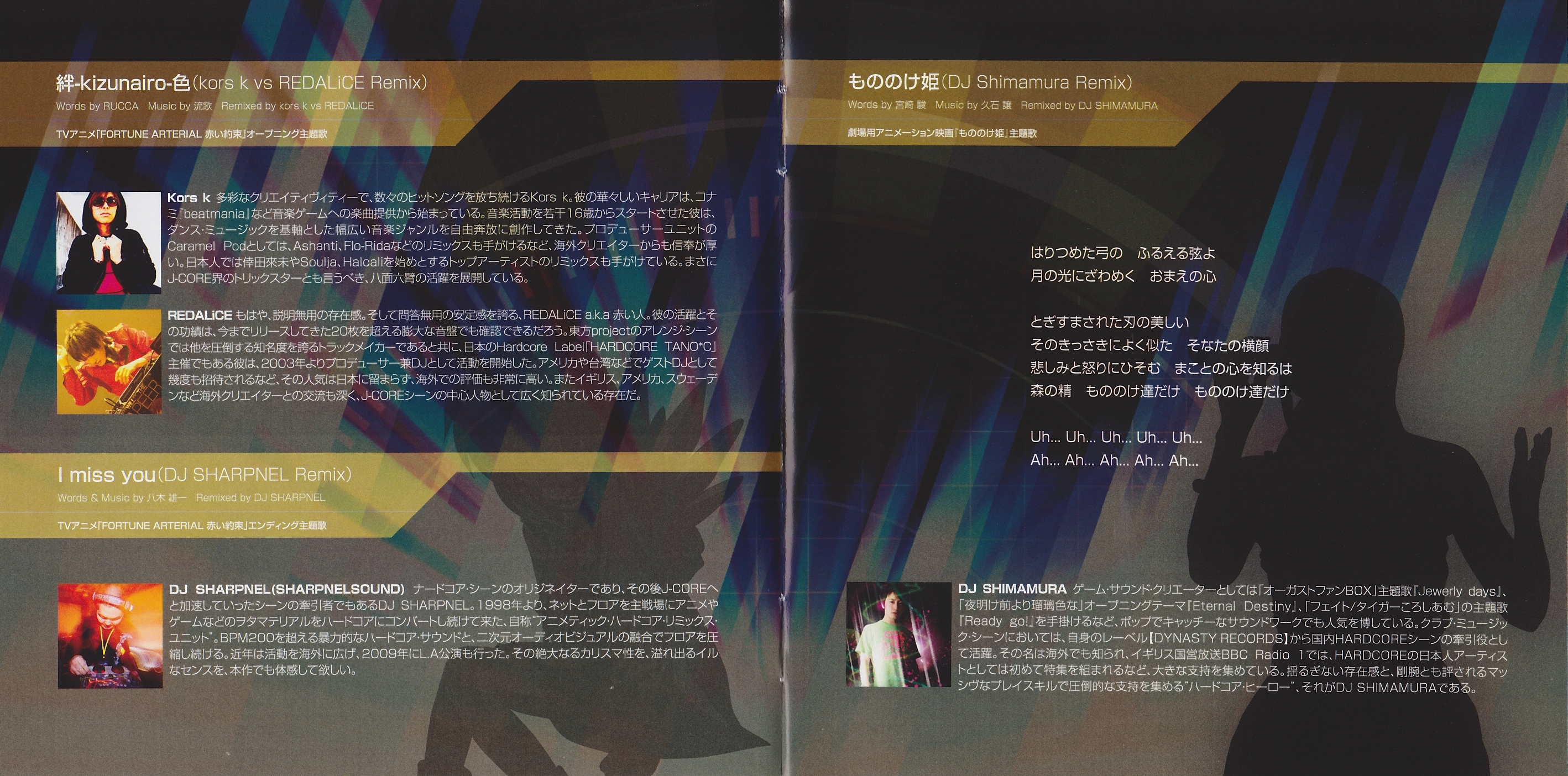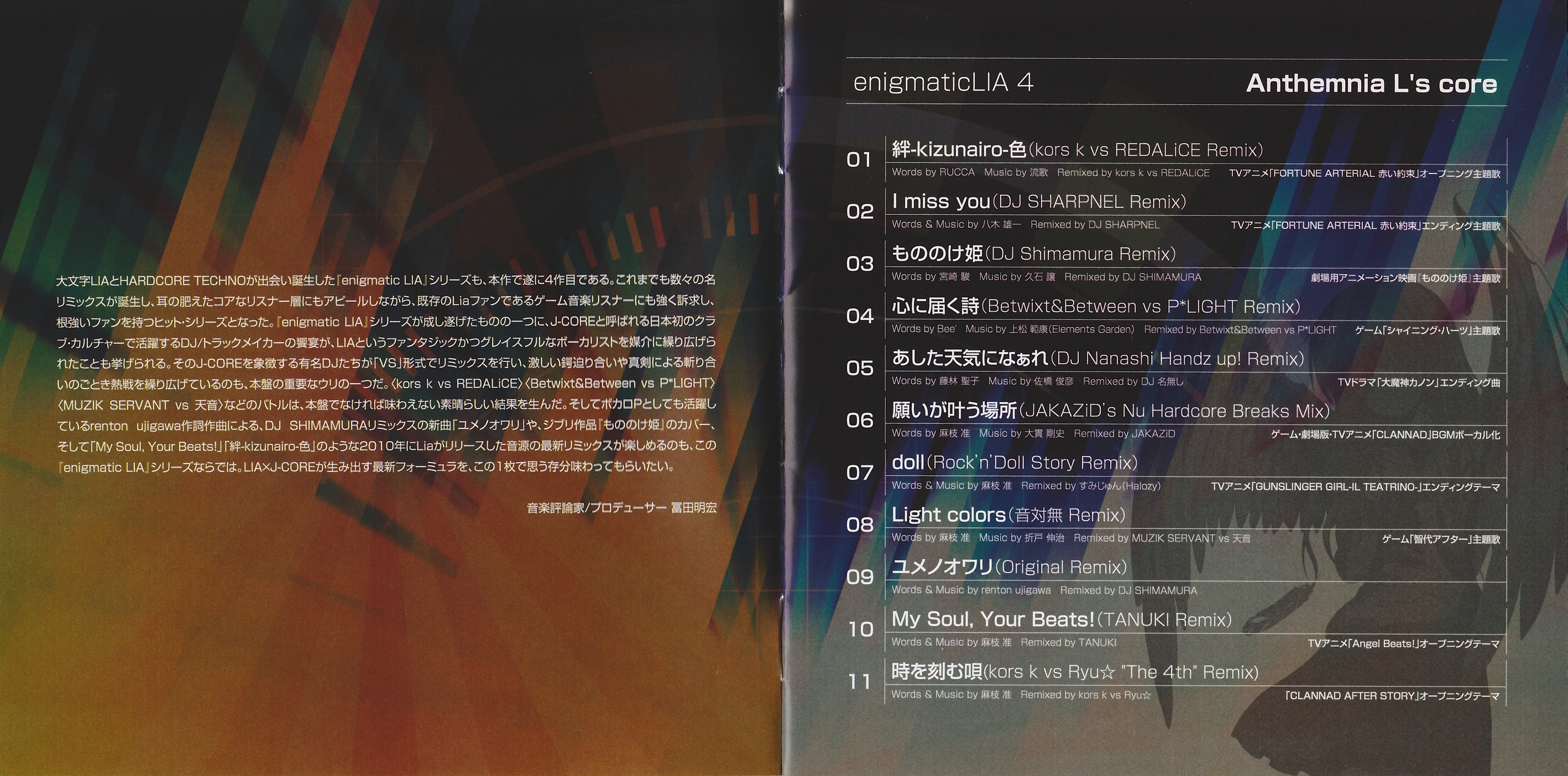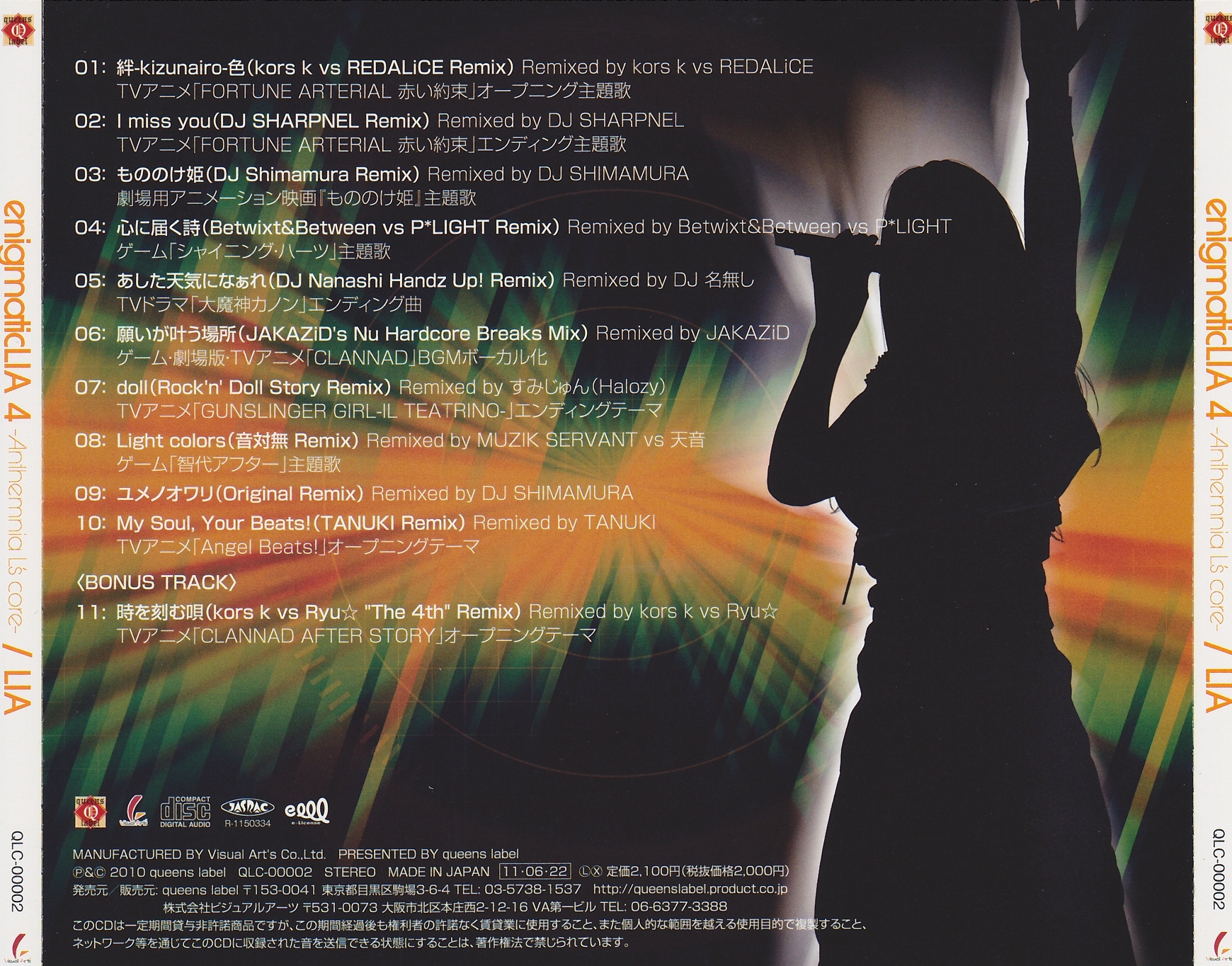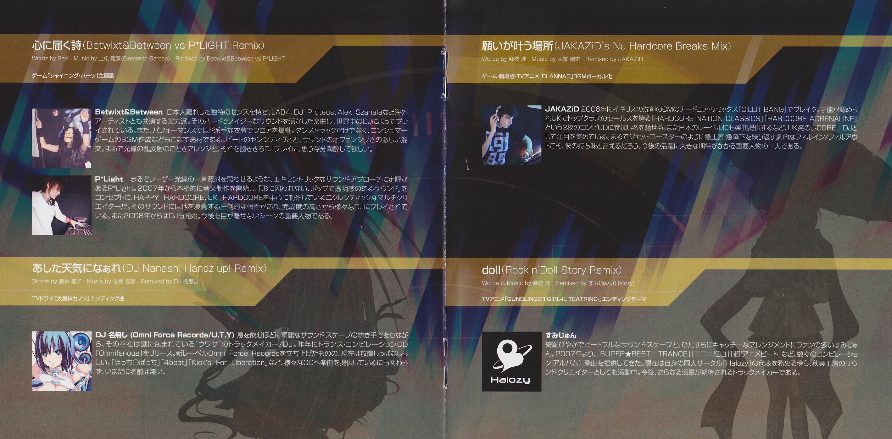 ANISON MATRIX, AMG MUSIC, Key Sounds label, Marvelous Entertainment, MOGRA, KITUNE (LaFiesta!), SEGA, T.Y.Entertainment, TOKY CASE, VisualArt's, ANIPLEX, アニソンインデックス大臣 (Zephyr Cradle), Aruna Ryuki (LC:AZE), Conagusuri