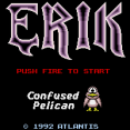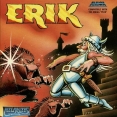 Erik is a platform game that scrolls vertically but not horizontally. The titular hero is a friendly viking whose peaceful living is disrupted when the evil god Loki is reincarnated. Not happy with Erik's refusal to join the pursuits of more violent vikings, Loki casts a spell on the lands turning the world into a terrible place. Erik now has to overcome all the dangers so that he once again can live in peace.