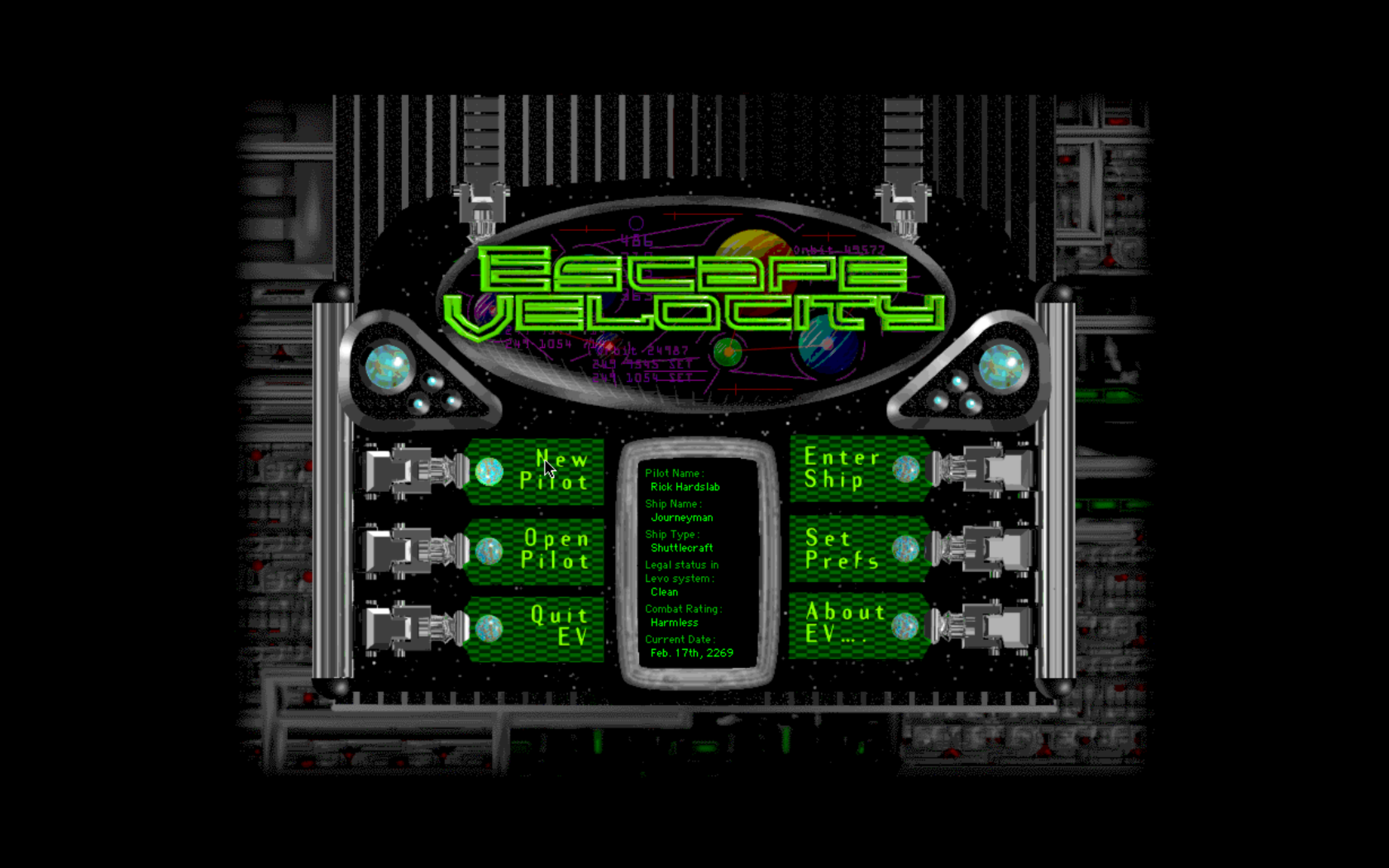 Source album and game rips of the opening title from Escape Velocity (1996), Escape Velocity: Override (1998), and Galactic Scourge (1997) (Escape Velocity Total Conversion by Reid "Glow" Ellis & Sander "Wanderer" Gossard).
