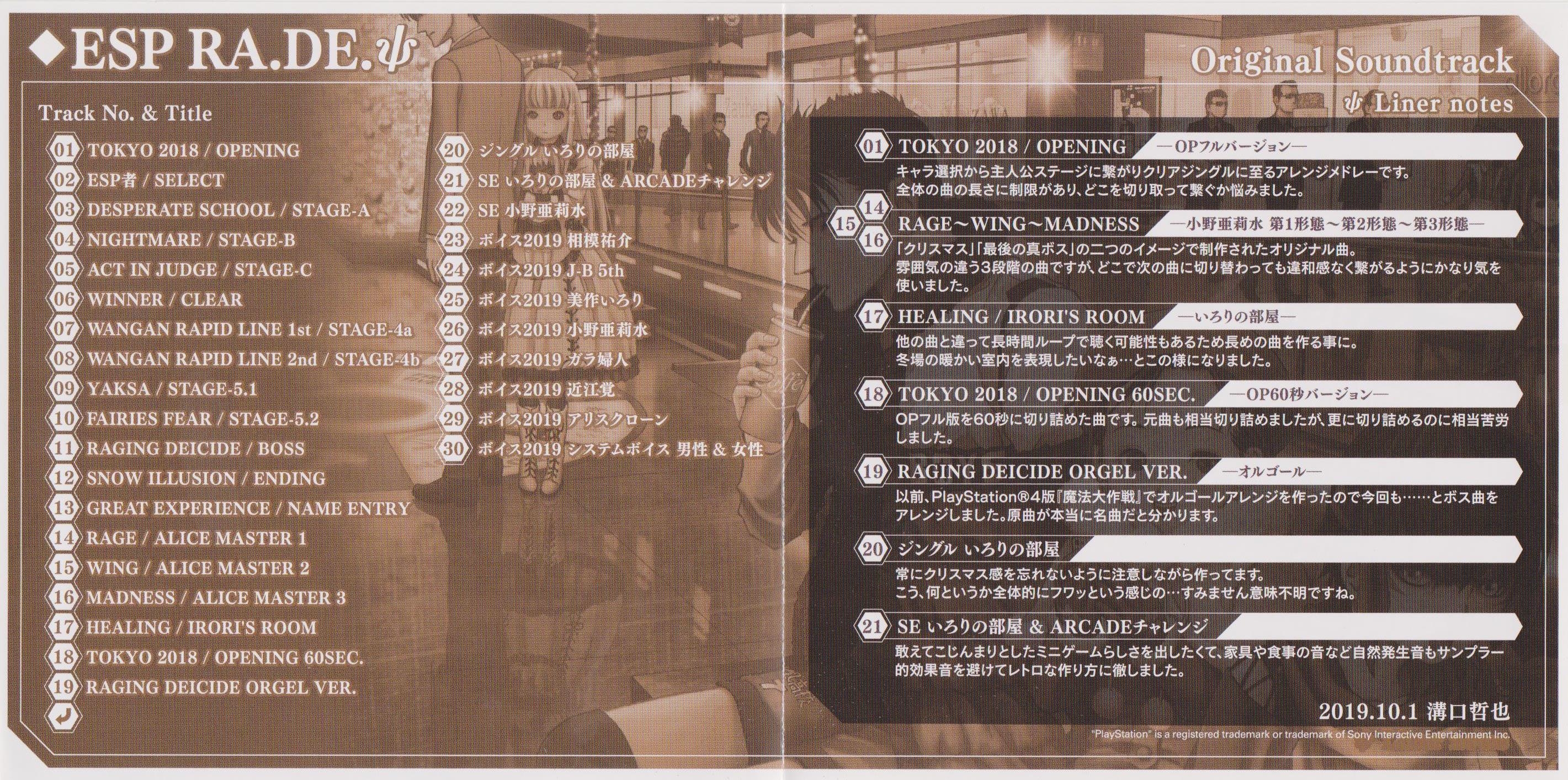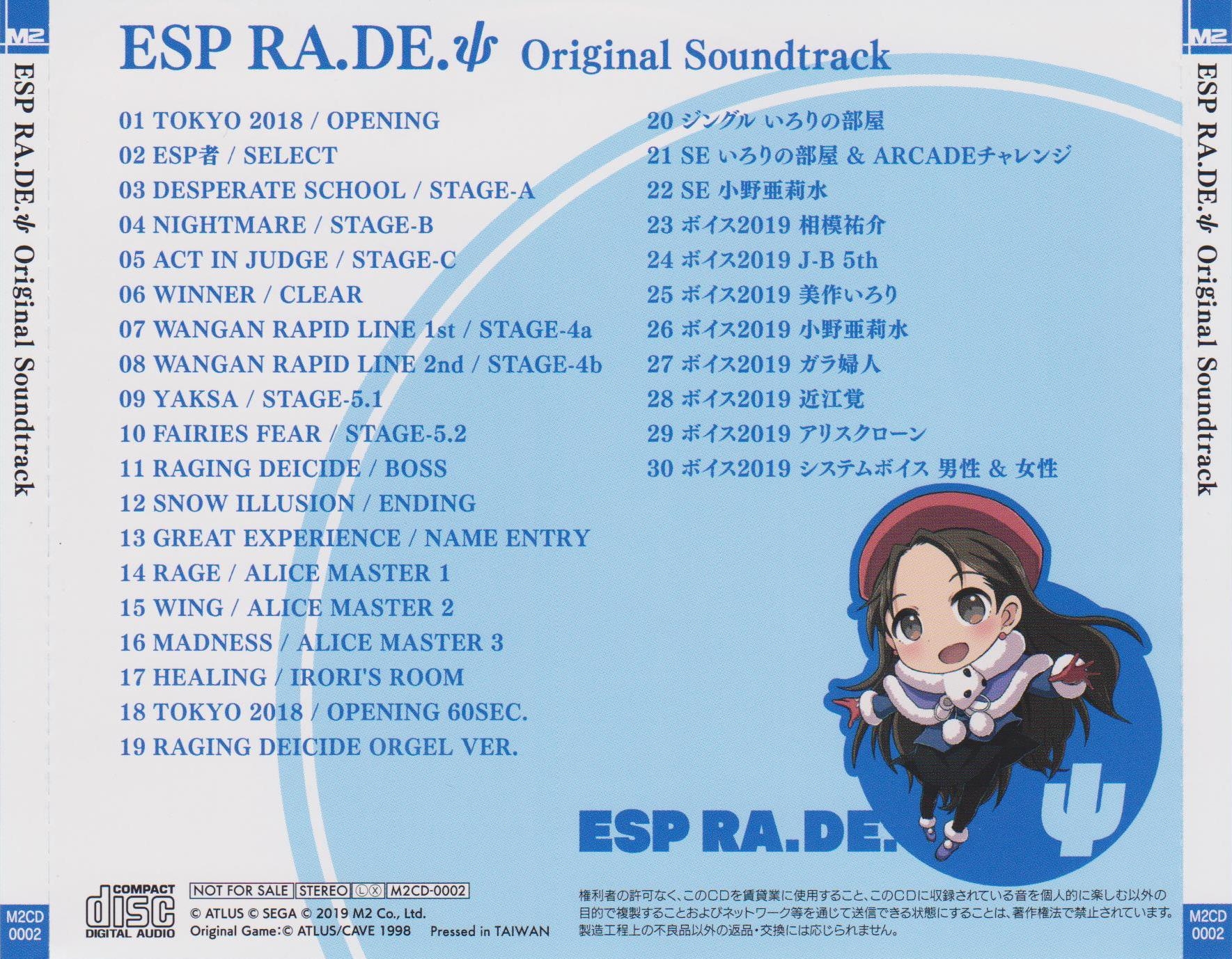 Special soundtrack CD included with the limited edition of ESP RA.DE. Ψ for Playstation 4 and Nintendo Switch.