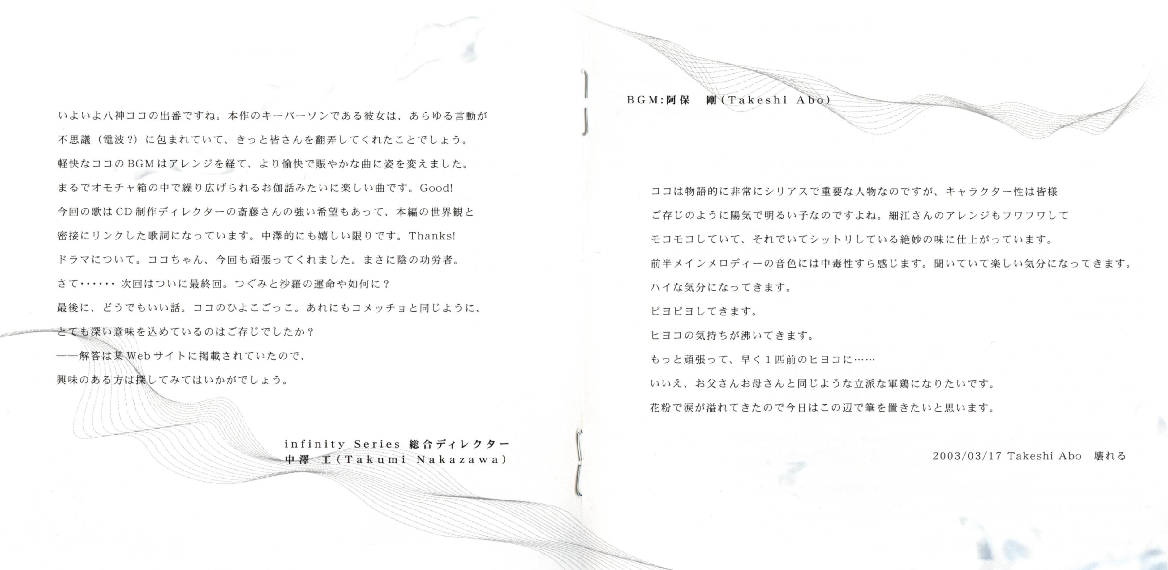 Track 3 composed & arranged by Takeshi Abo