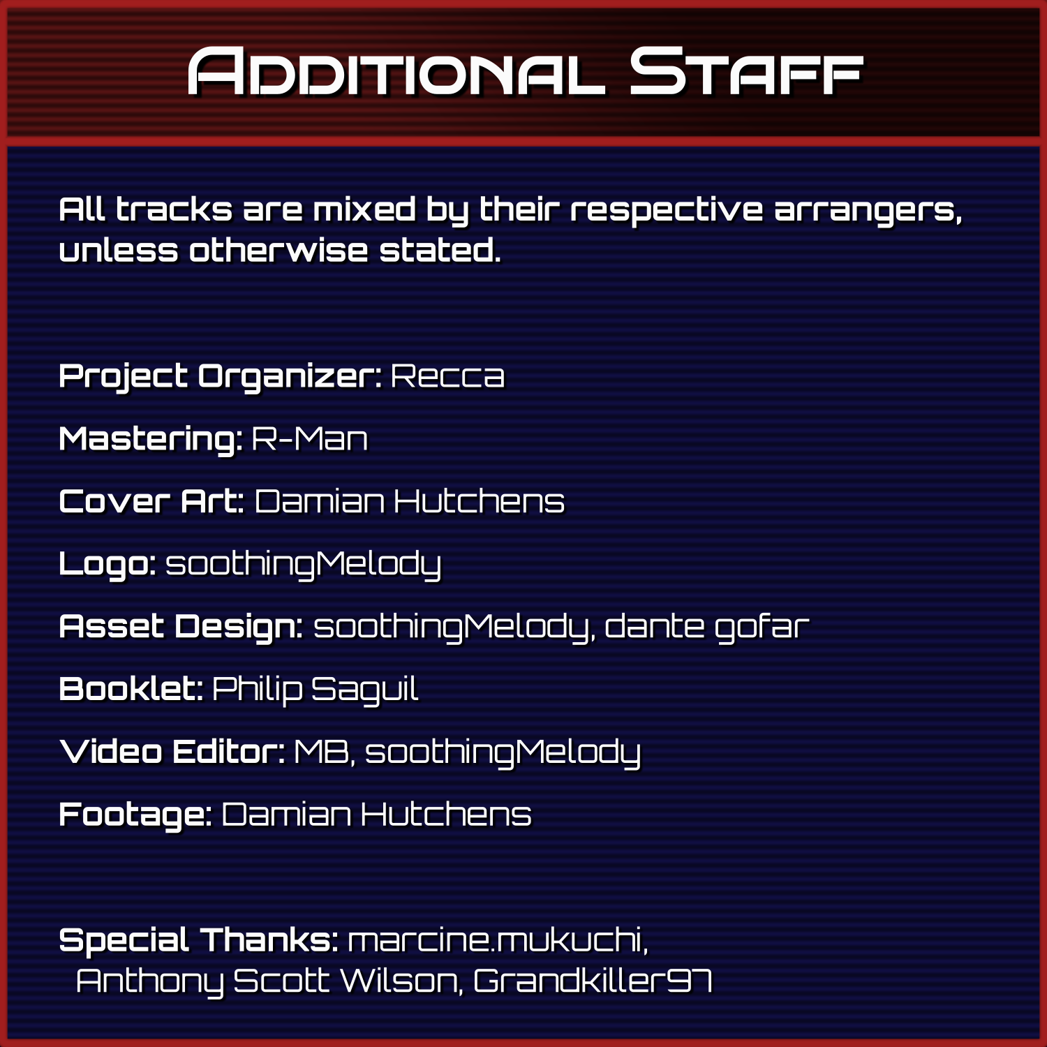 Special Thanks: marcine.mukuchi, Anthony Scott Wilson, Grandkiller97