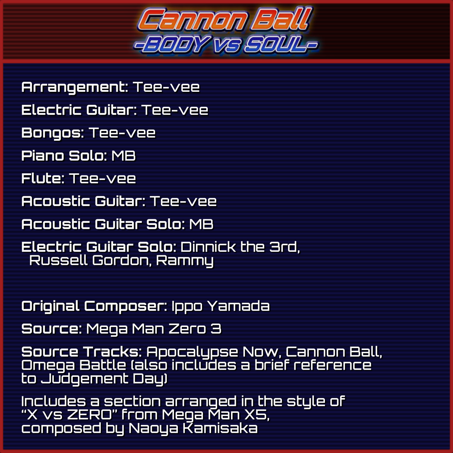 Includes a motif from “ZERO” from Mega Man X, composed by Setsuo Yamamoto
