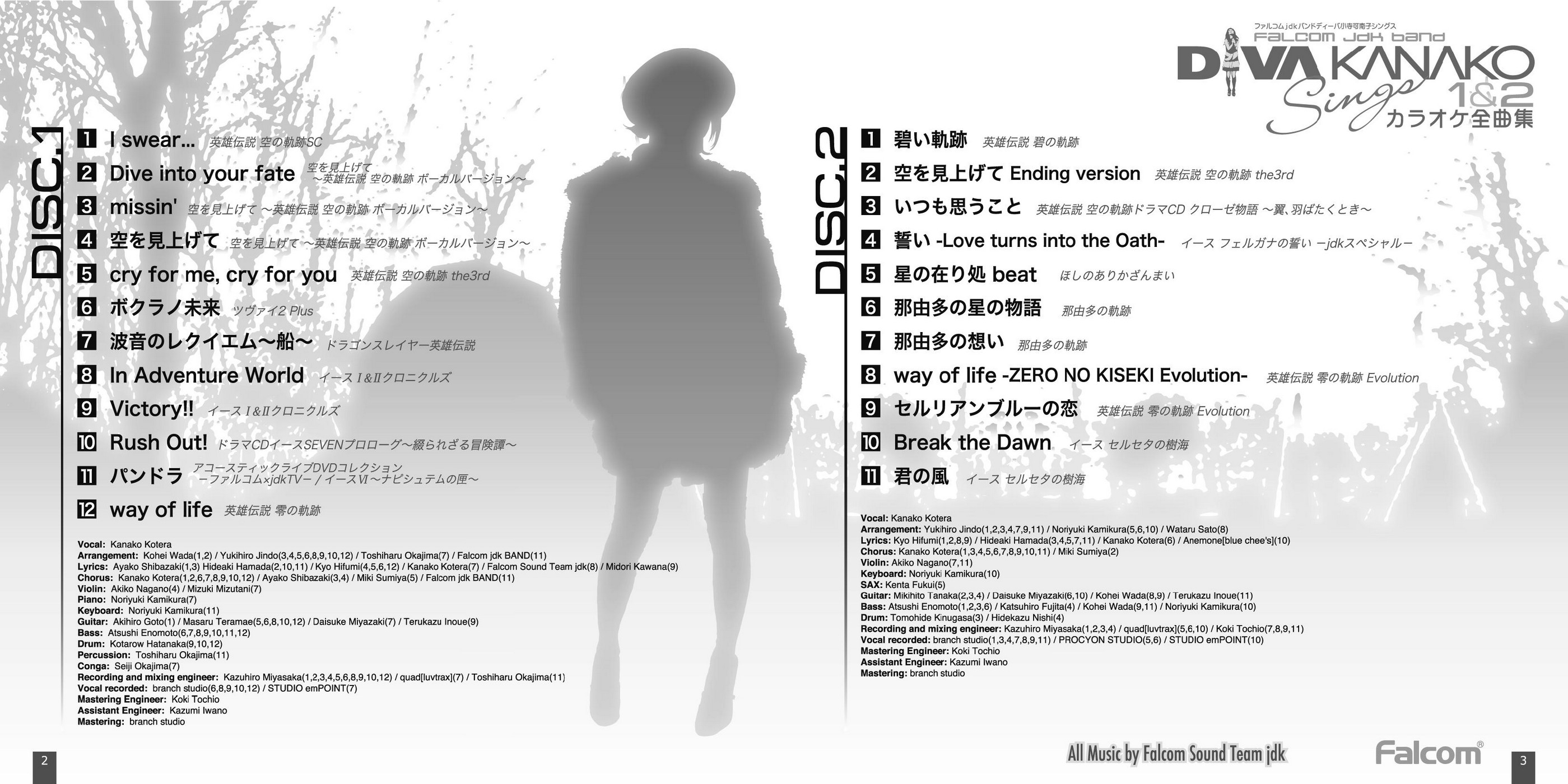 Chorus: Kanako Kotera(1,2,6,7,8,9,10,12) / Ayako Shibazaki(3,4) / Miki Sumiya(5) / Falcom jdk BAND(11)