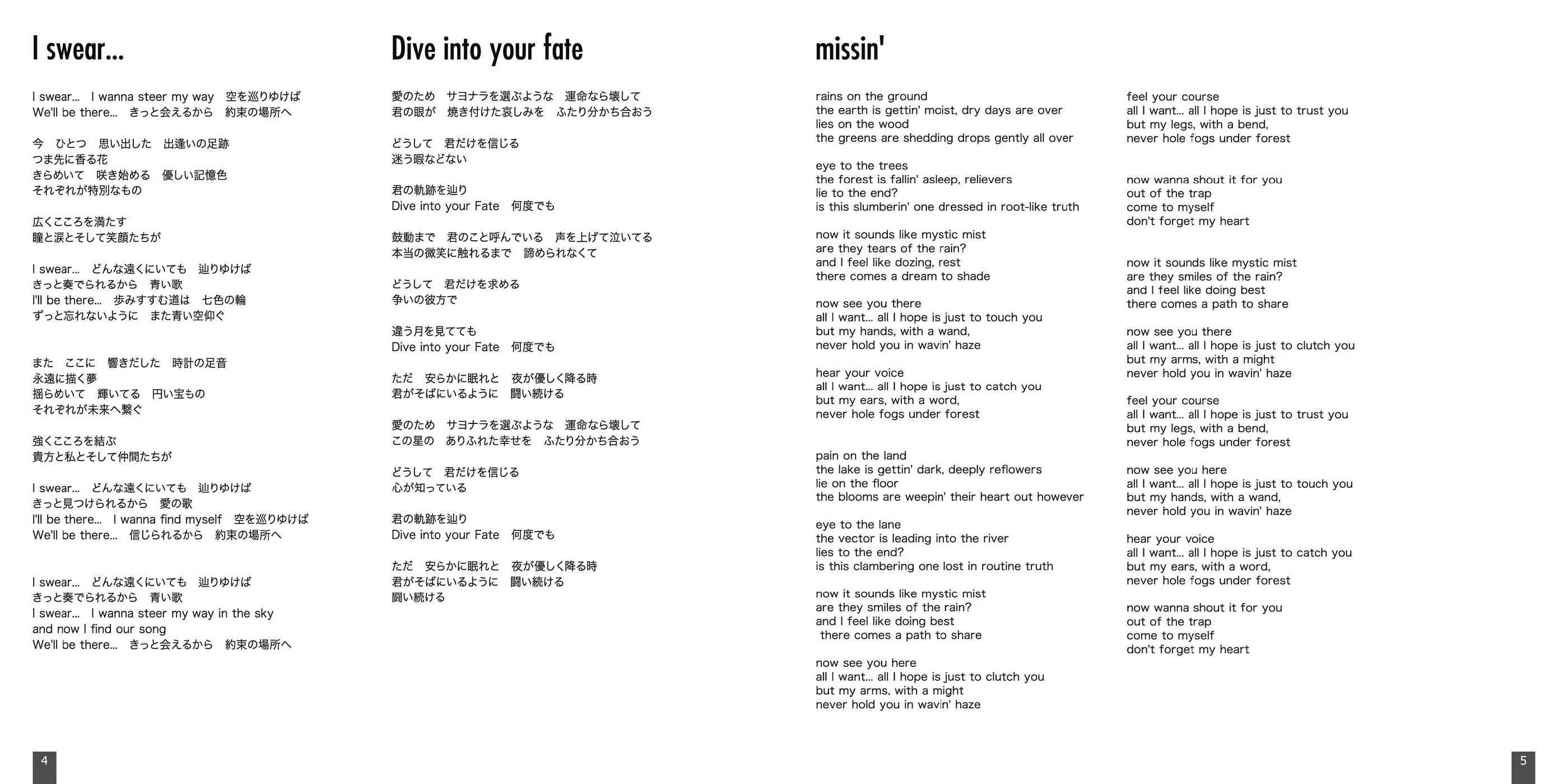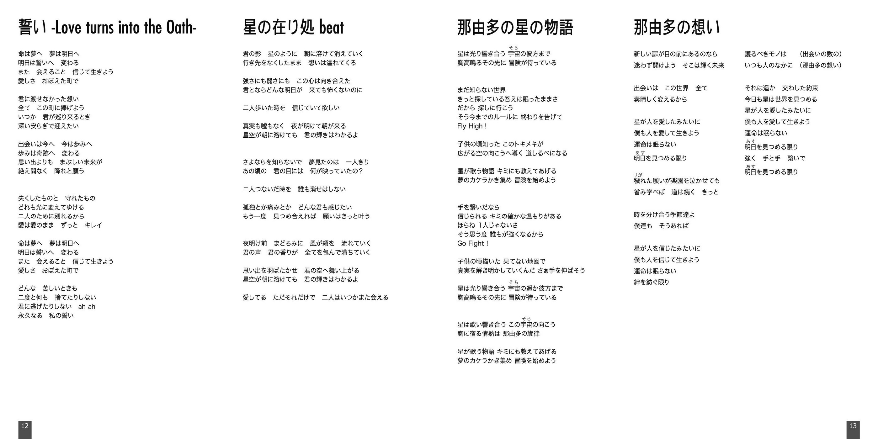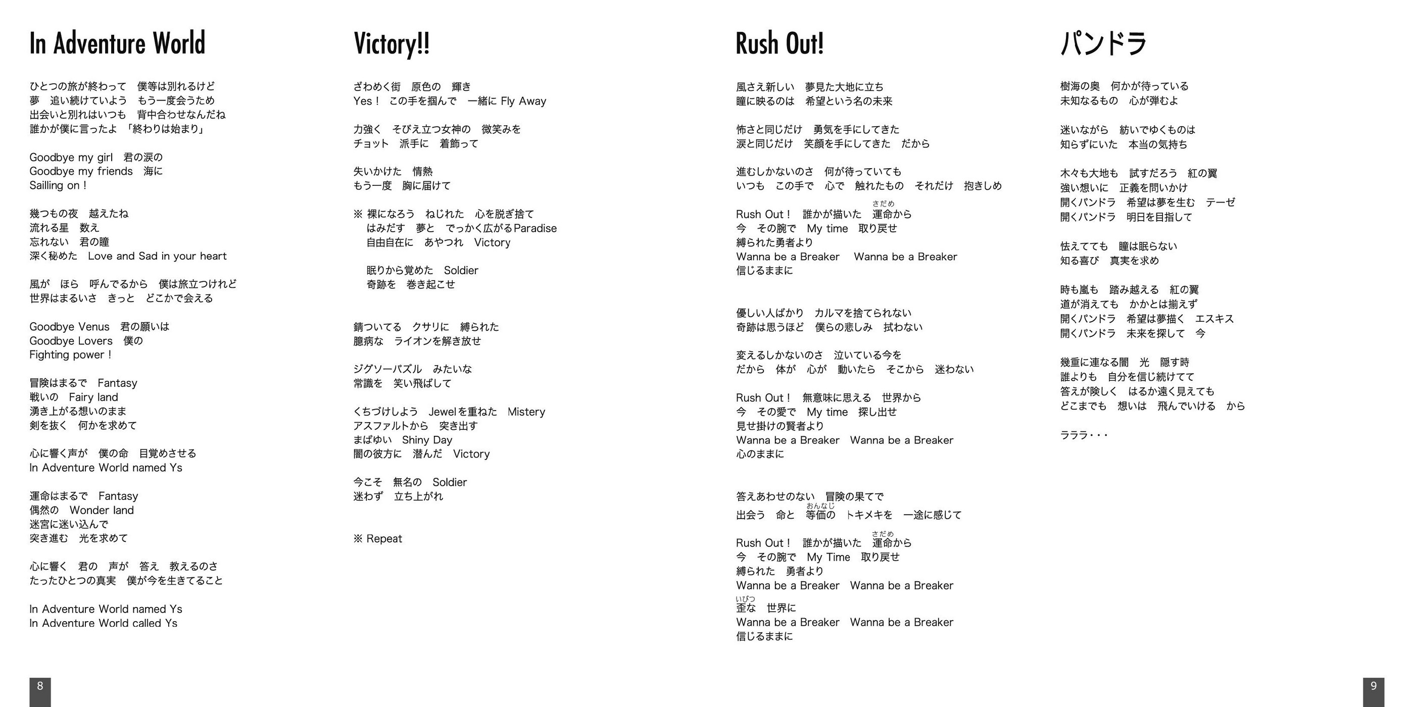 Lyrics: Ayako Shibazaki(1,3) Hideaki Hamada(2,10,11) / Kyo Hifumi(4,5,6,12) / Kanako Kotera(7) / Falcom Sound Team jdk(8) / Midori Kawana(9)