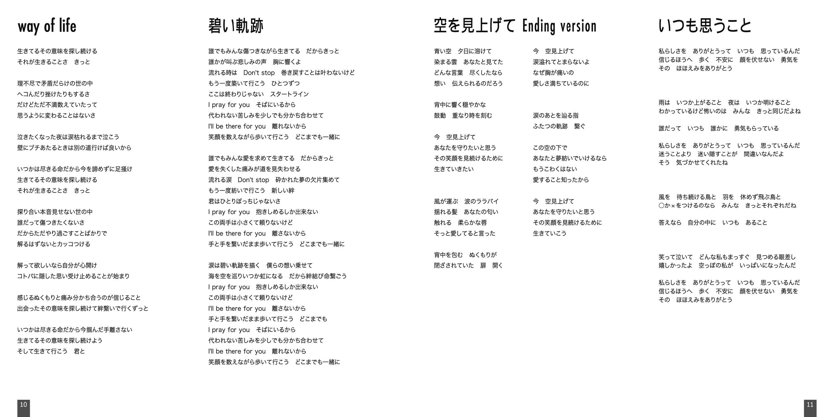 Lyrics: Kyo Hifumi(1,2,8,9) / Hideaki Hamada(3,4,5,7,11) / Kanako Kotera(6) / Anemone[blue chee's](10)
