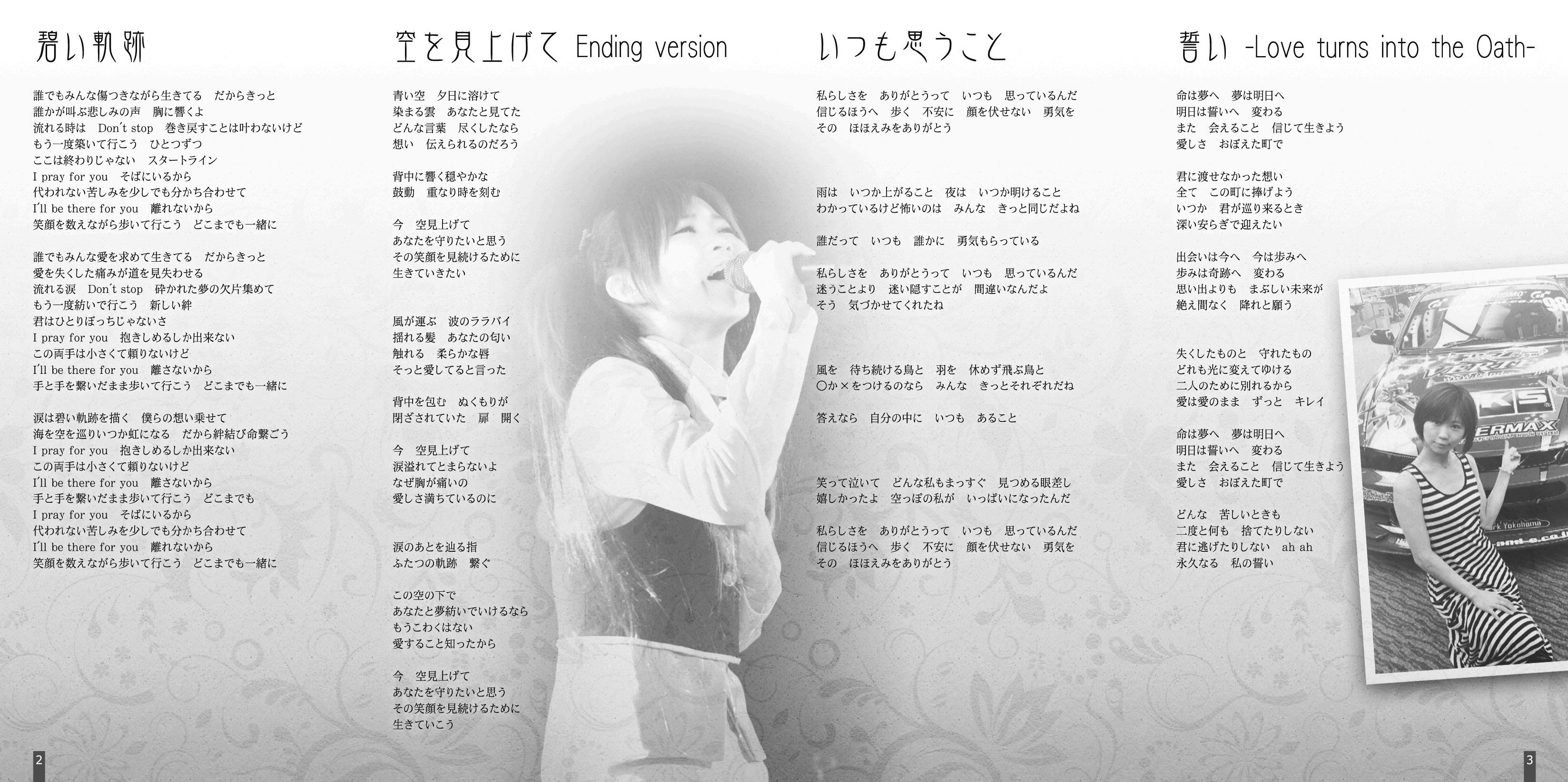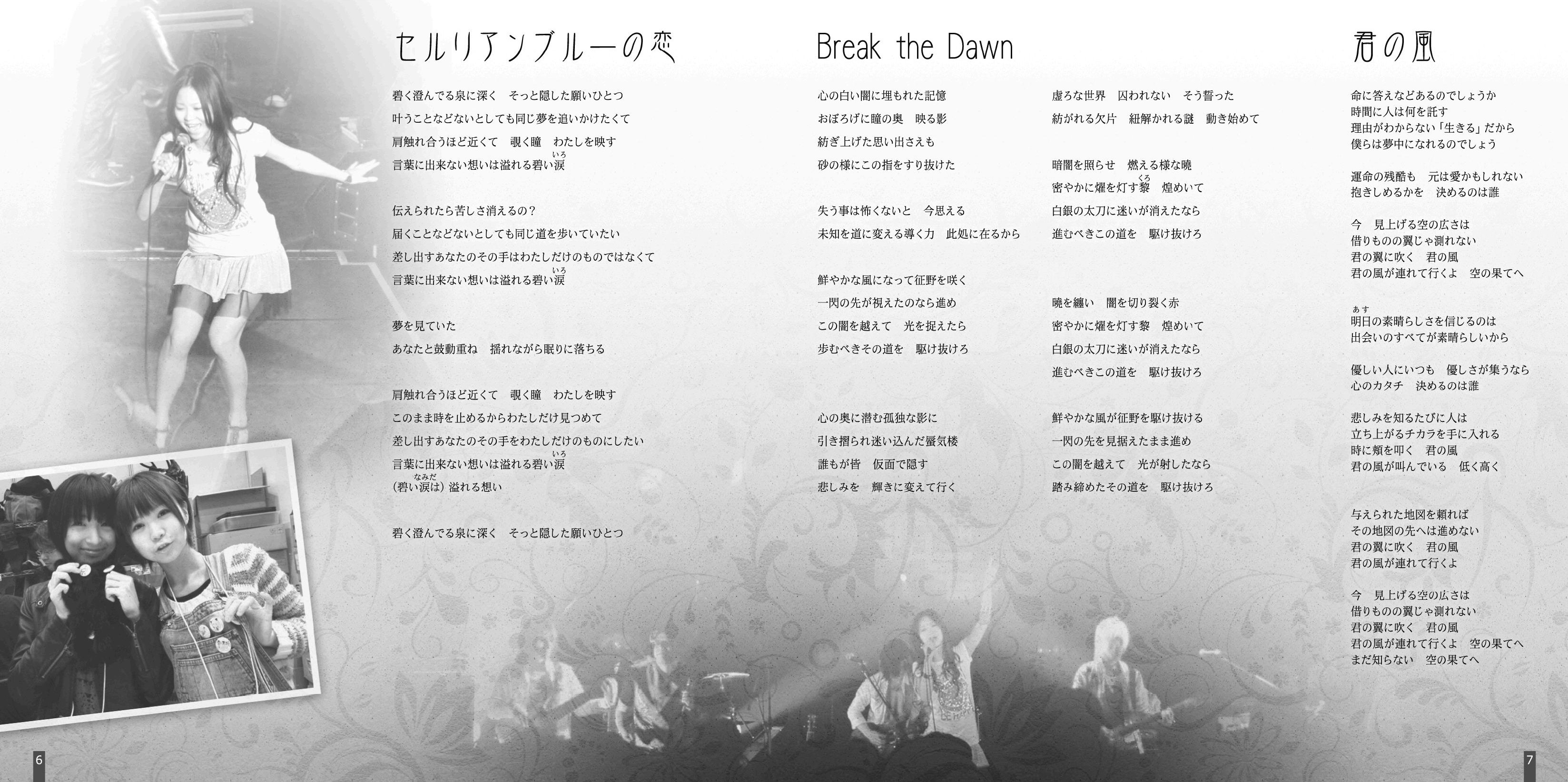 Lyrics: Kyo Hifumi(1,2,8,9) / Hideaki Hamada(3,4,5,7,11) / Kanako Kotera(6) / Anemone[blue chee's](10)