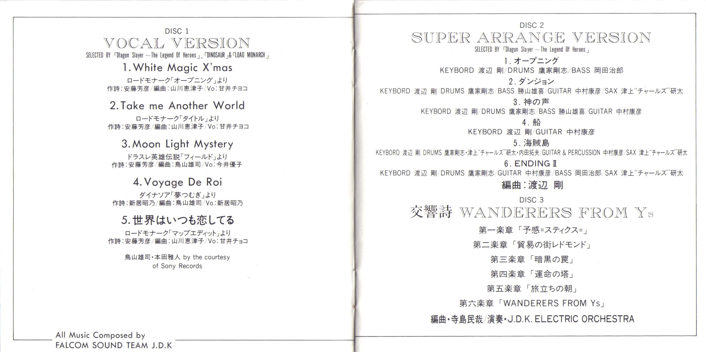 All Music Composed by Falcom Sound Team J.D.K.