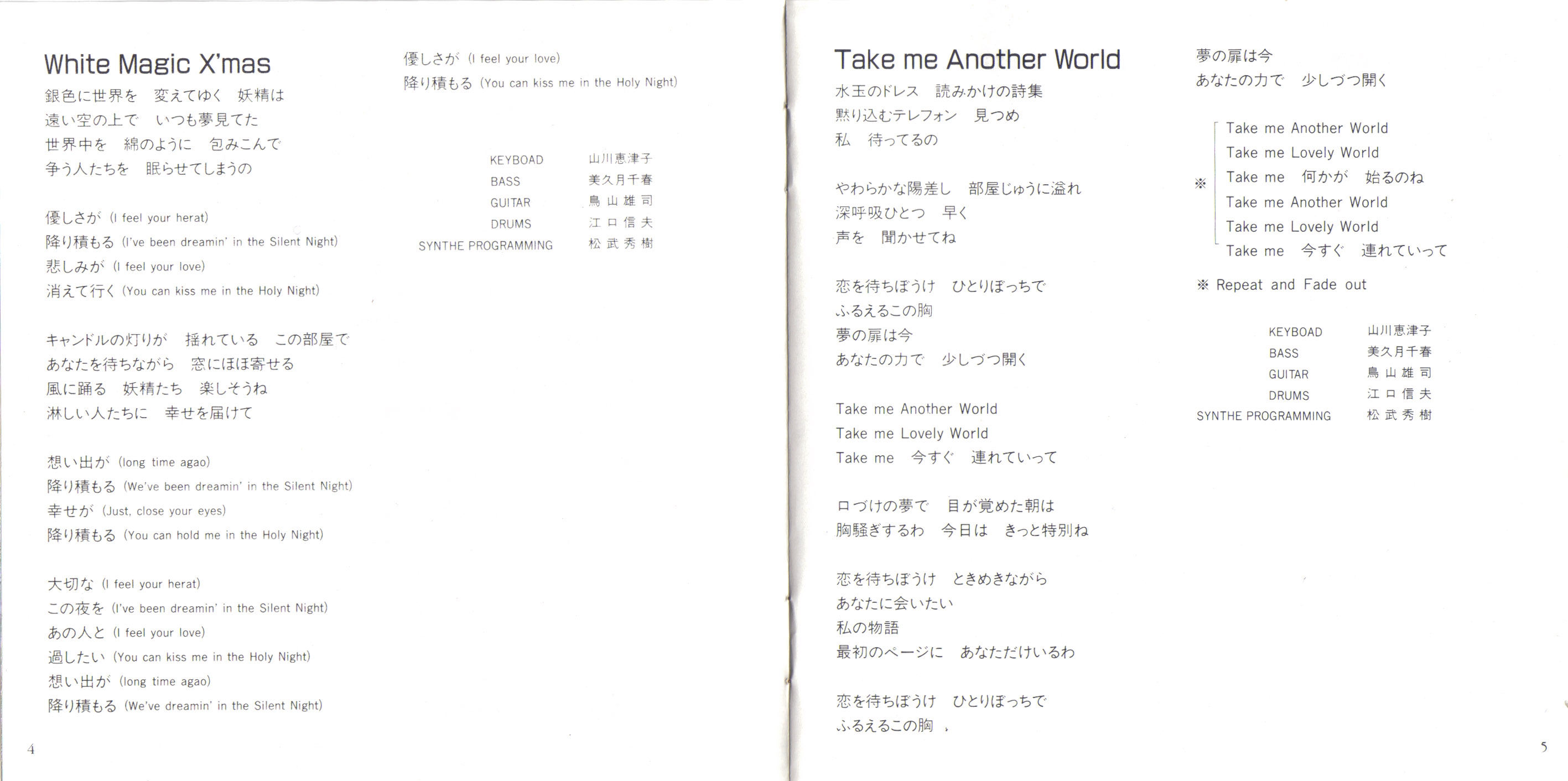 Lyrics: Yoshihiko Ando (1,2,3,5), Akino Arai (4)