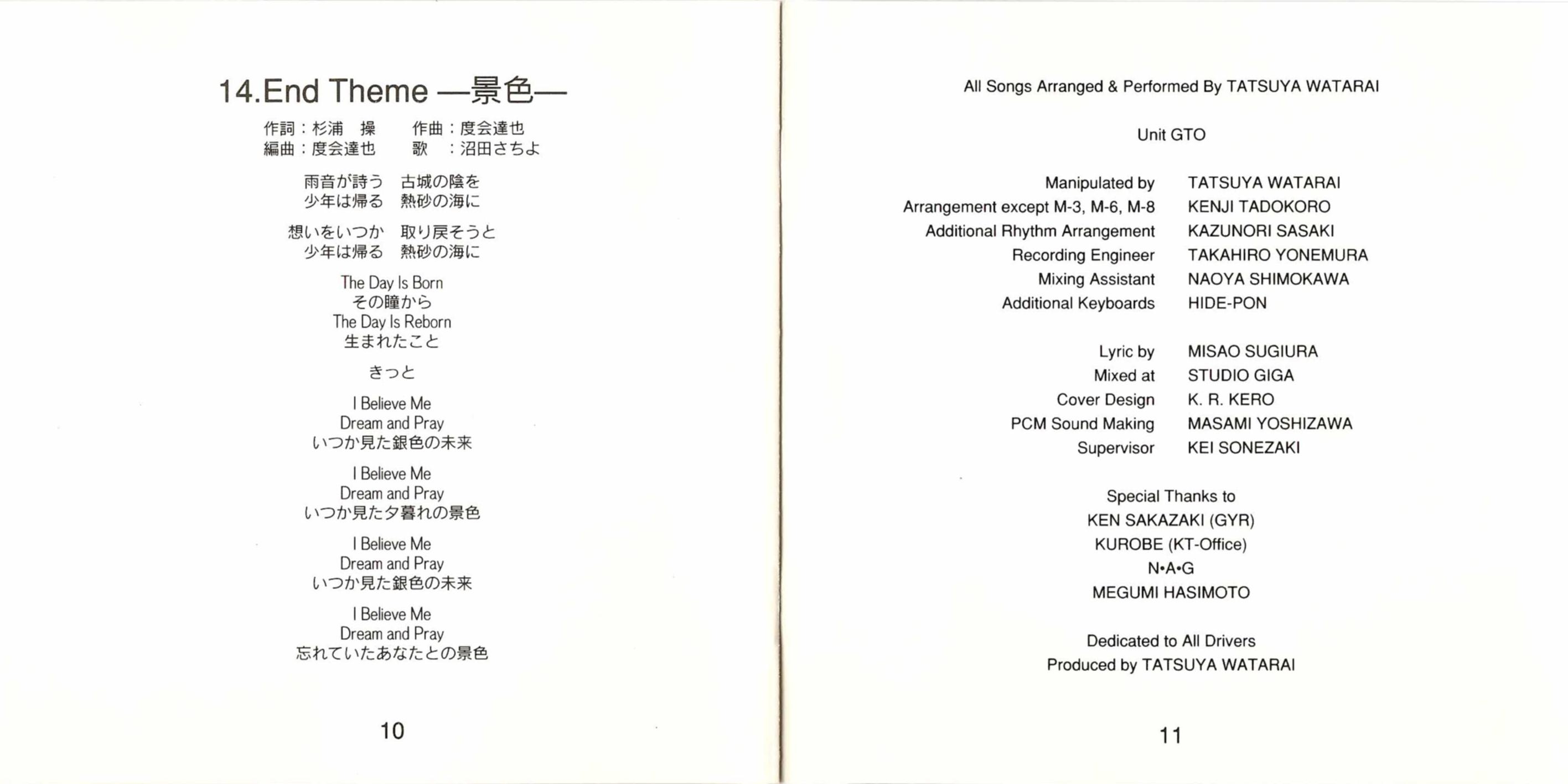 Arrangement: Tatsuya Watarai (1, 2, 4, 5, 7, 9~14), Kenji Tadokoro (3, 6, 8)