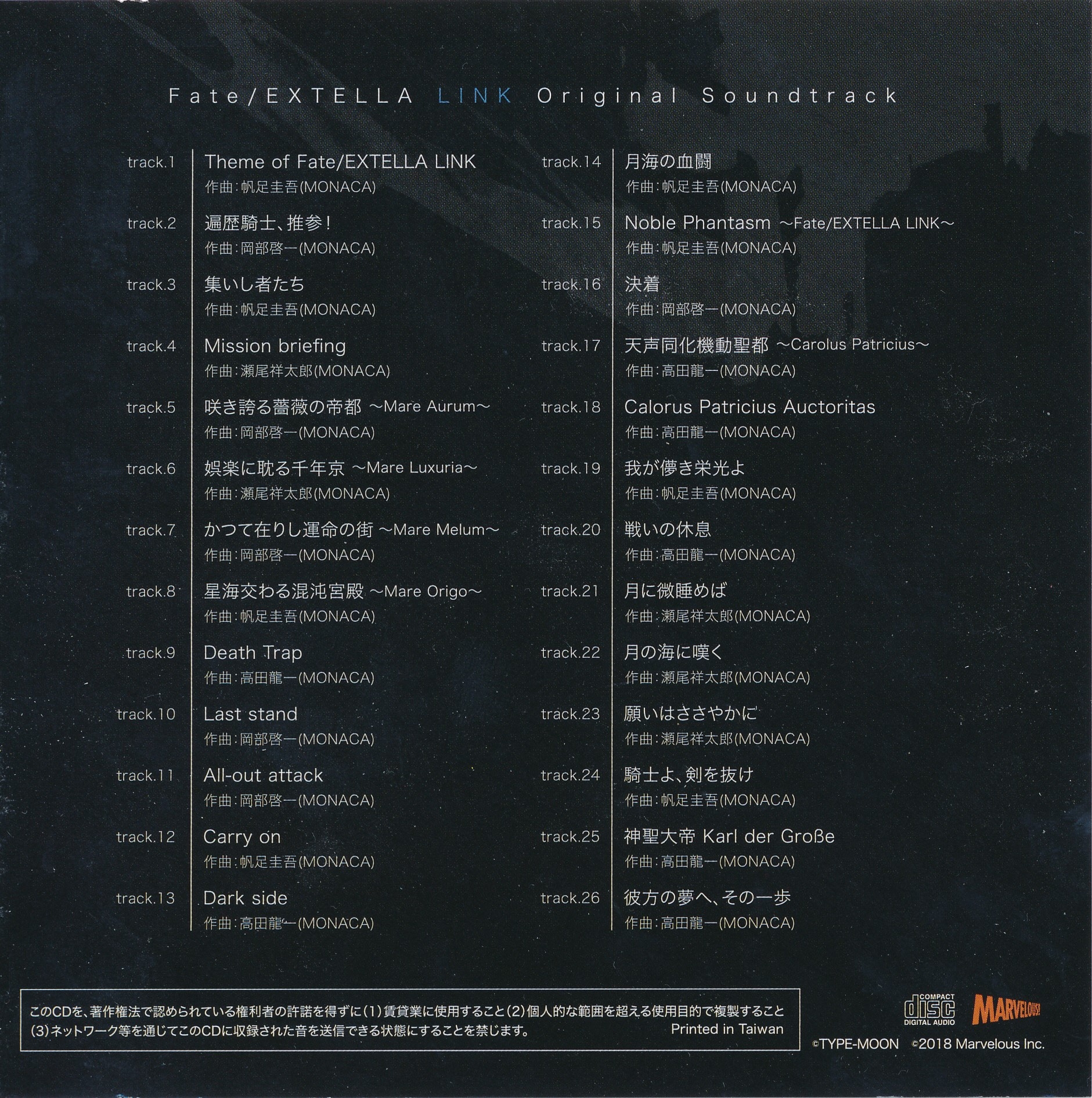 Enclosed with Fate/EXTELLA LINK PS4/PS Vita Premium Limited Edition (PLJM-16134/VLJM-38075).