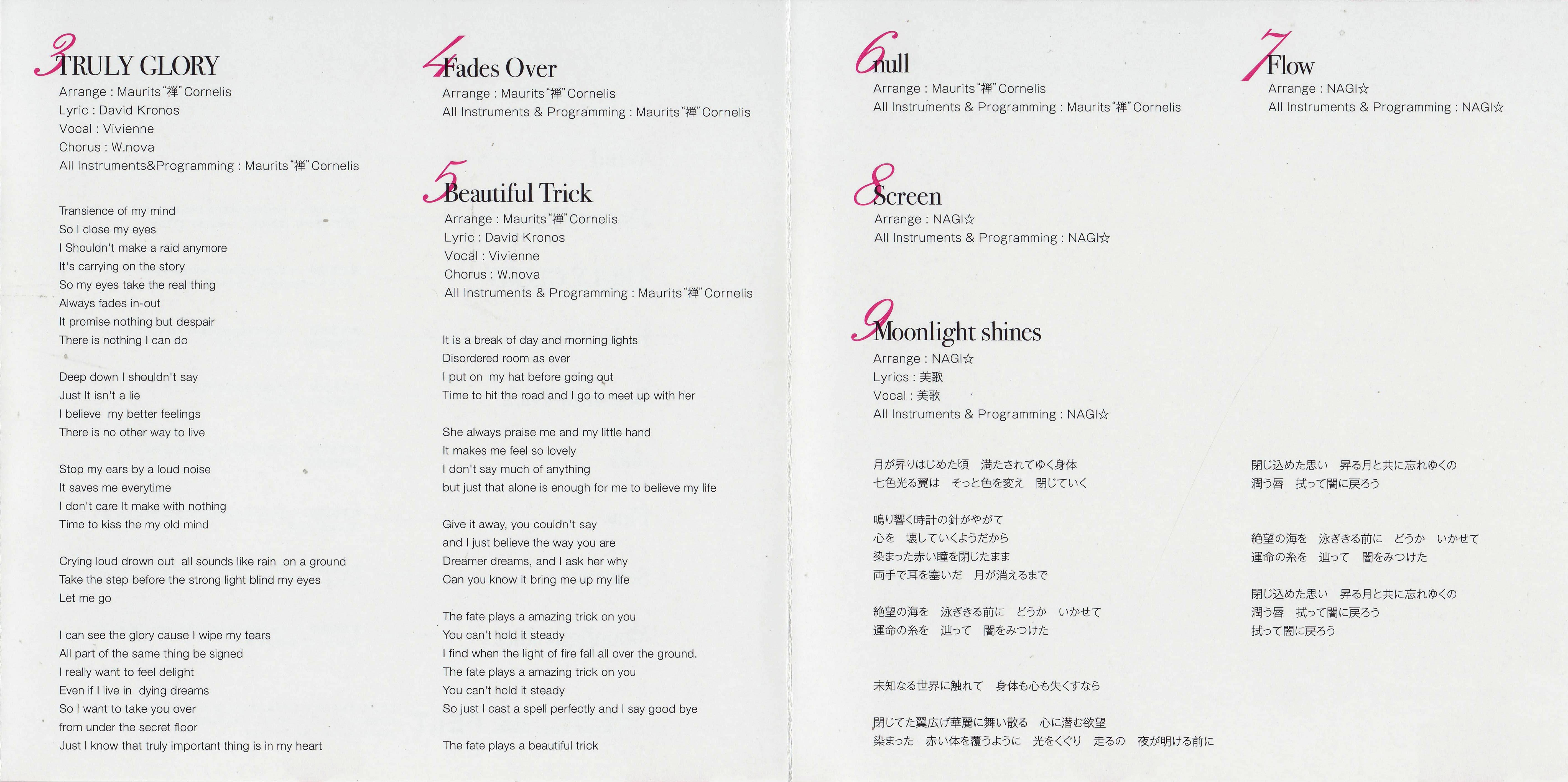 Arrangement, instruments and programming by NAGI☆ (1, 2, 7~9), Maurits "Zen" Cornelis (3~6)