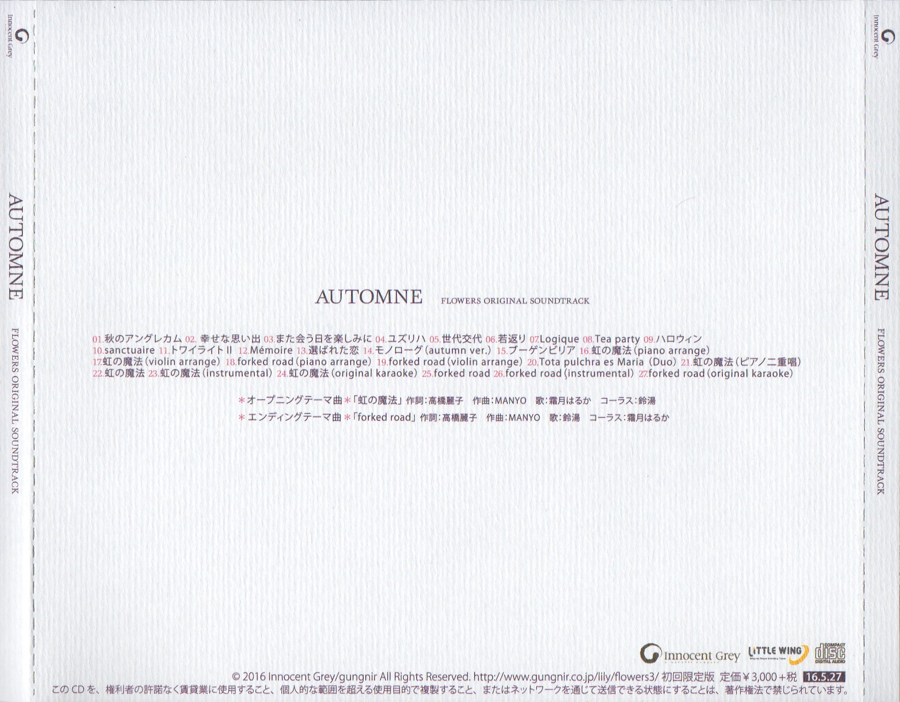 All tracks are composed by MANYO (Little Wing)