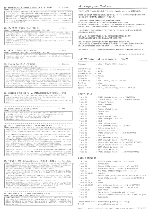 * Album also credits Toshiaki Sakoda (as Toshiaki Sakota), who also composed for GG Aleste, but this song was composed by Takeuchi only.