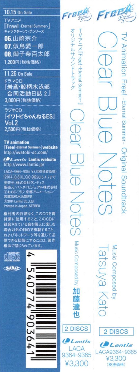 TV Anime "Free! -Eternal Summer-" Original Soundtrack Clear Blue Notes