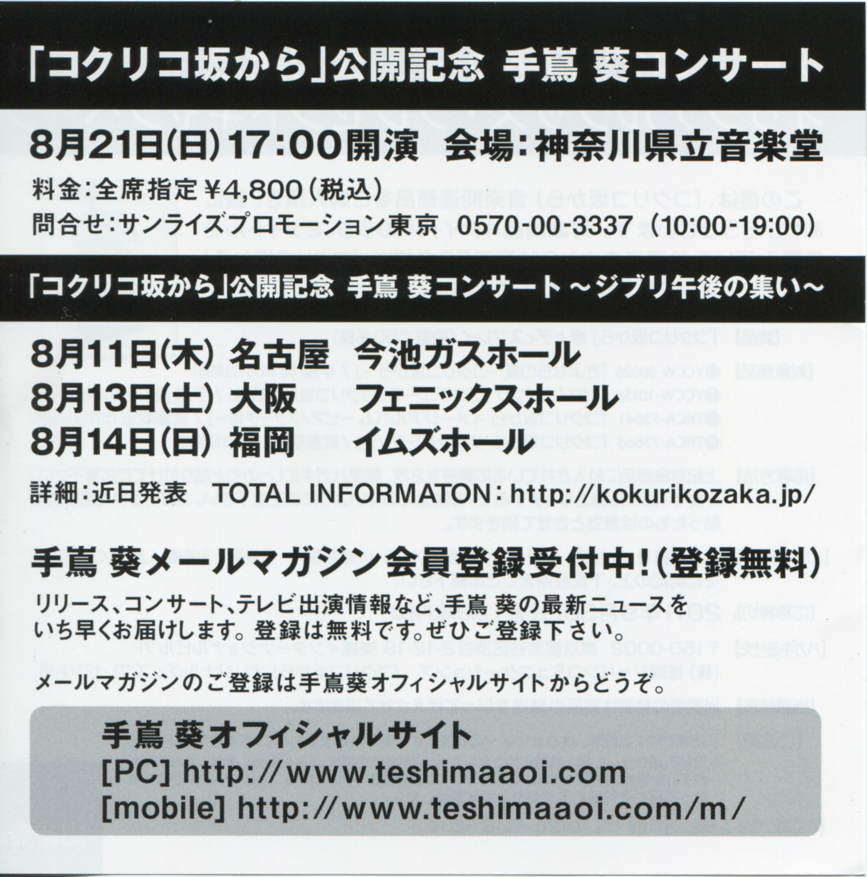 Assistance: TOKUMA JAPAN COMMUNICATIONS, avex marketing, Sony Music Communications, TOHO, TOHO MARKETING