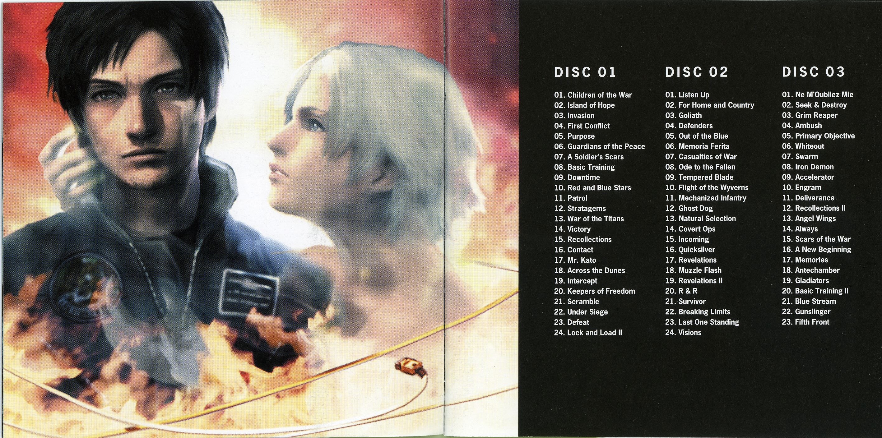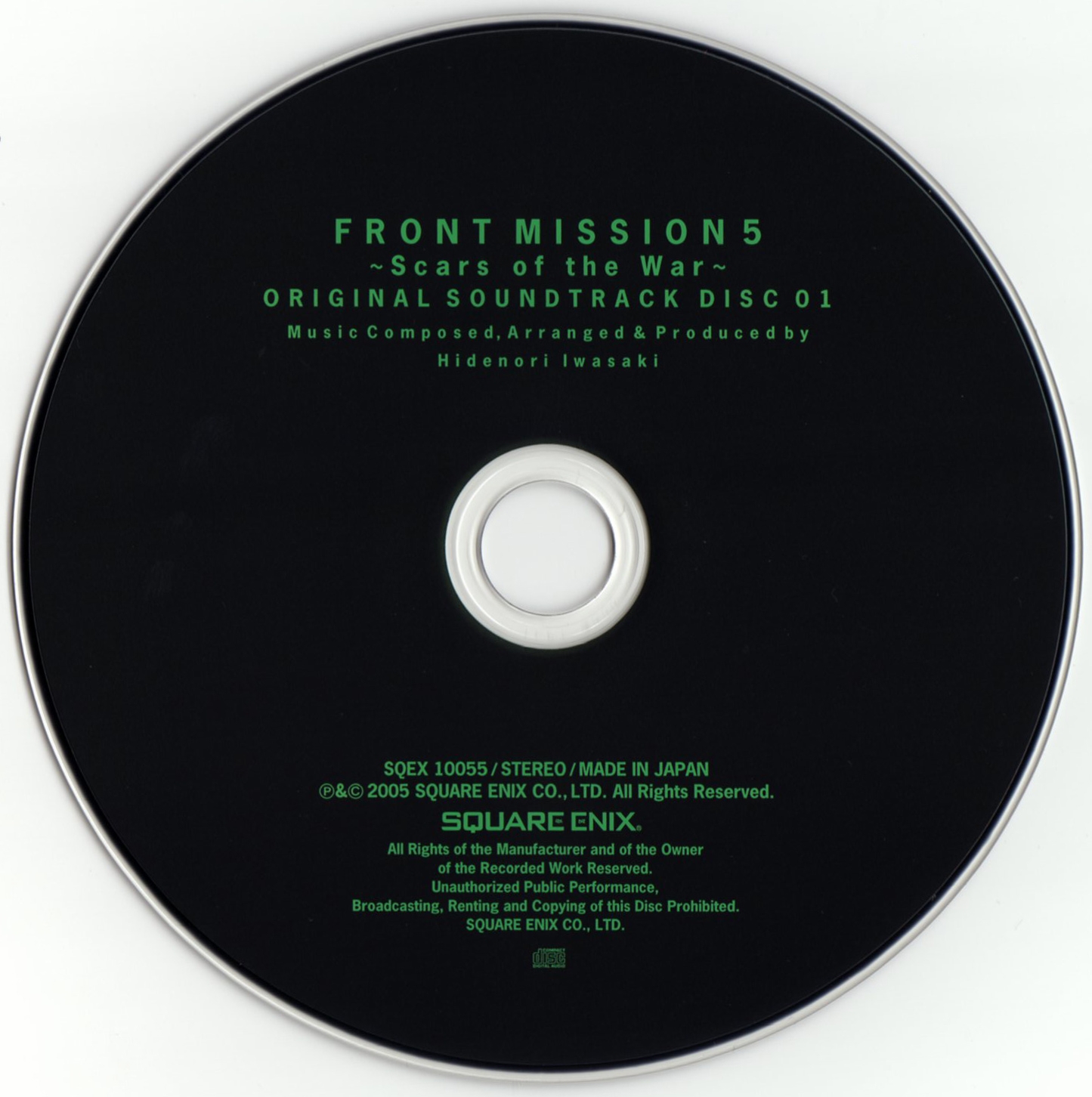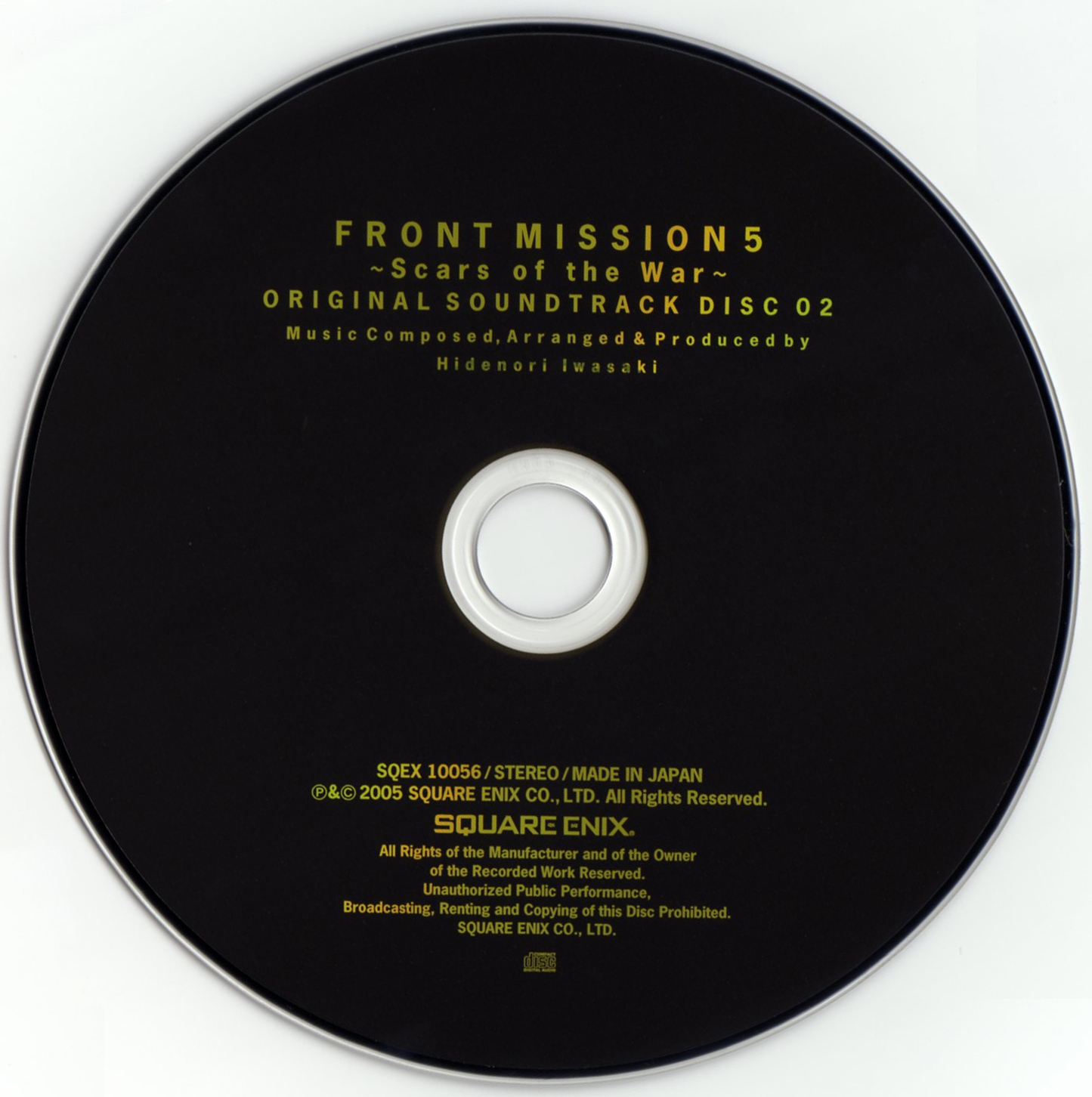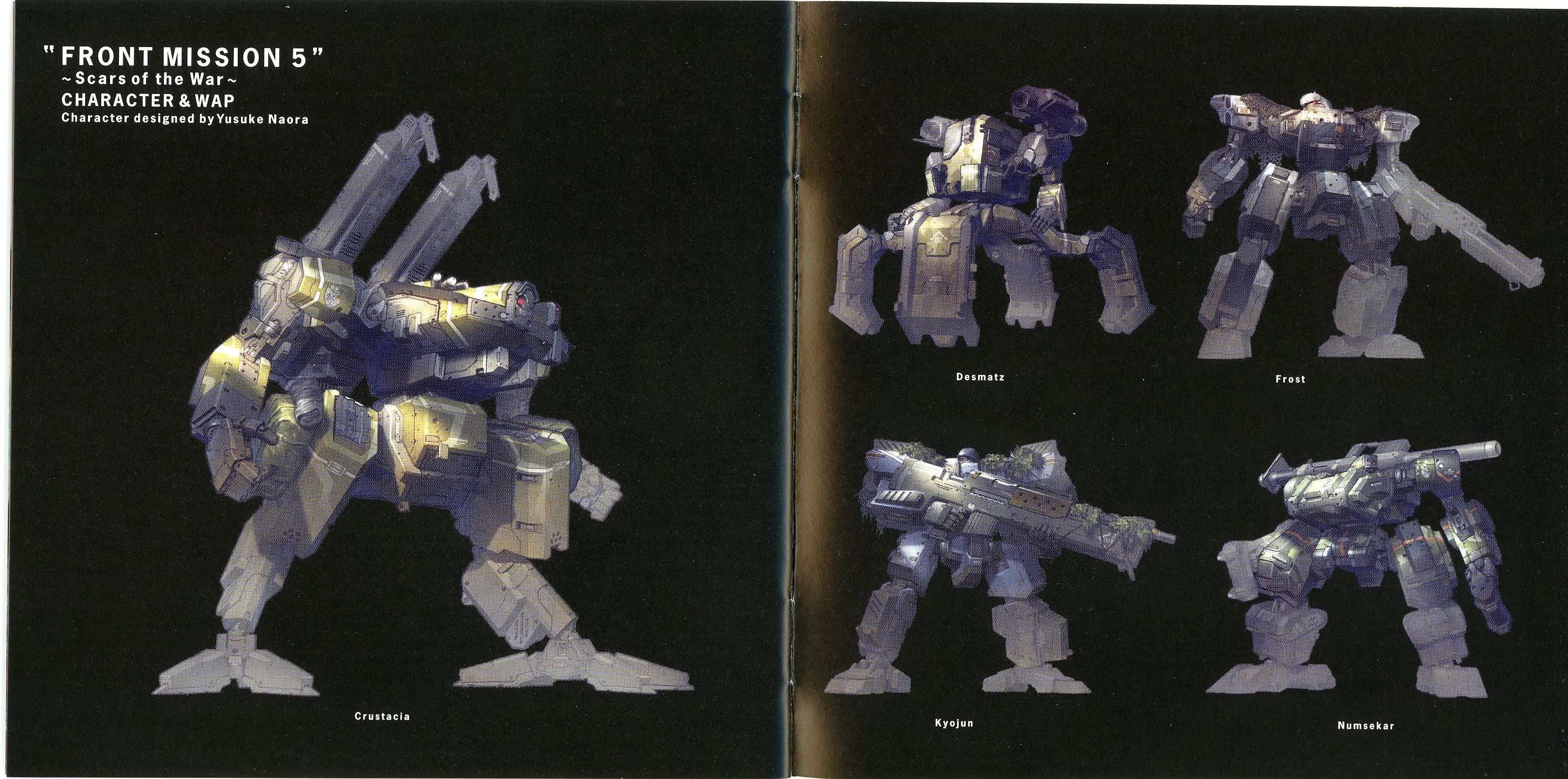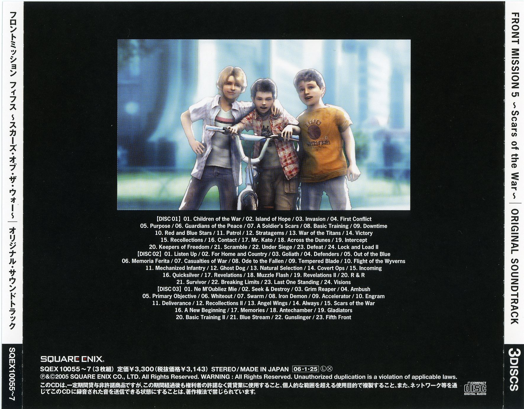 Liner Notes: Hidenori Iwasaki (pg. 5-6, 11, 12, 14~17), Shintaro Tamai (Front Mission 5 Director) (pg. 7), Hiroyuki Saegusa (Front Mission 5 Scenario Writer) (pg. 8), Kenichiro Fukui (pg. 12, 15, 16), Masayoshi Soken (pg. 17)