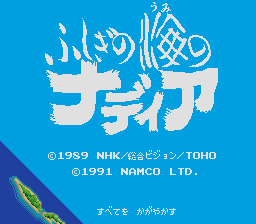 Fushigi no Umi no Nadia is one of the several games based on the anime series The Secret of Blue Water. The series (and the game) are loosely based on the stories by the French science fiction author Jules Verne. The game is set in 1889, a time of great inventions and technology progress unseen before. The player controls Jean, a young genius scientist. In Paris he meets Nadia, an African circus performer. Nadia wears a pendant that contains magical powers, and that is why the evil Gargoyle is after her - this pendant is just the item she needs to build the ultimate weapon, the Tower of Babel. Jean will do anything to protect Nadia, and hope that his love to her, his adventurer spirit, and the power of science will eventually defeat Gargoyle.