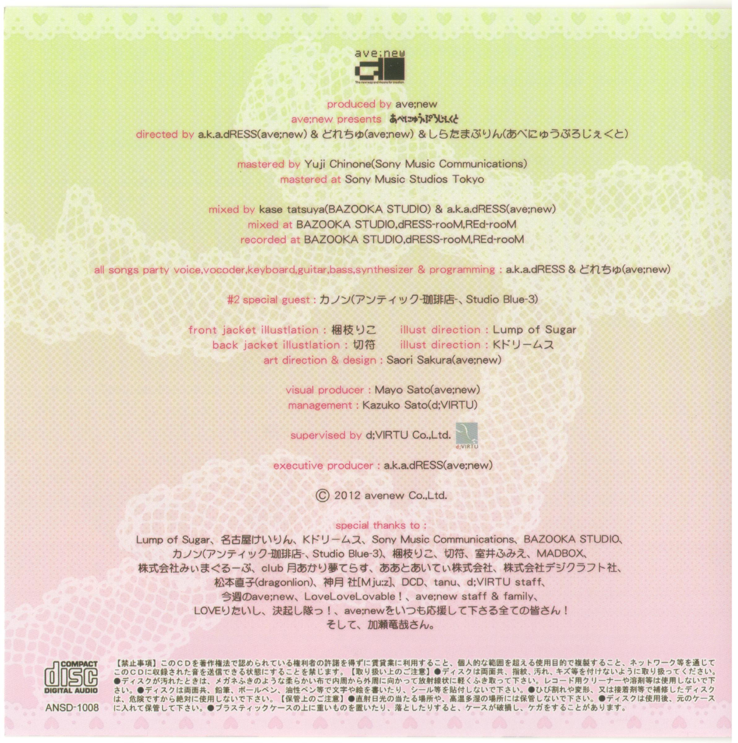 Performer: ave;new project[あべにゅうぷろじぇくと] feat.Saori Sakura