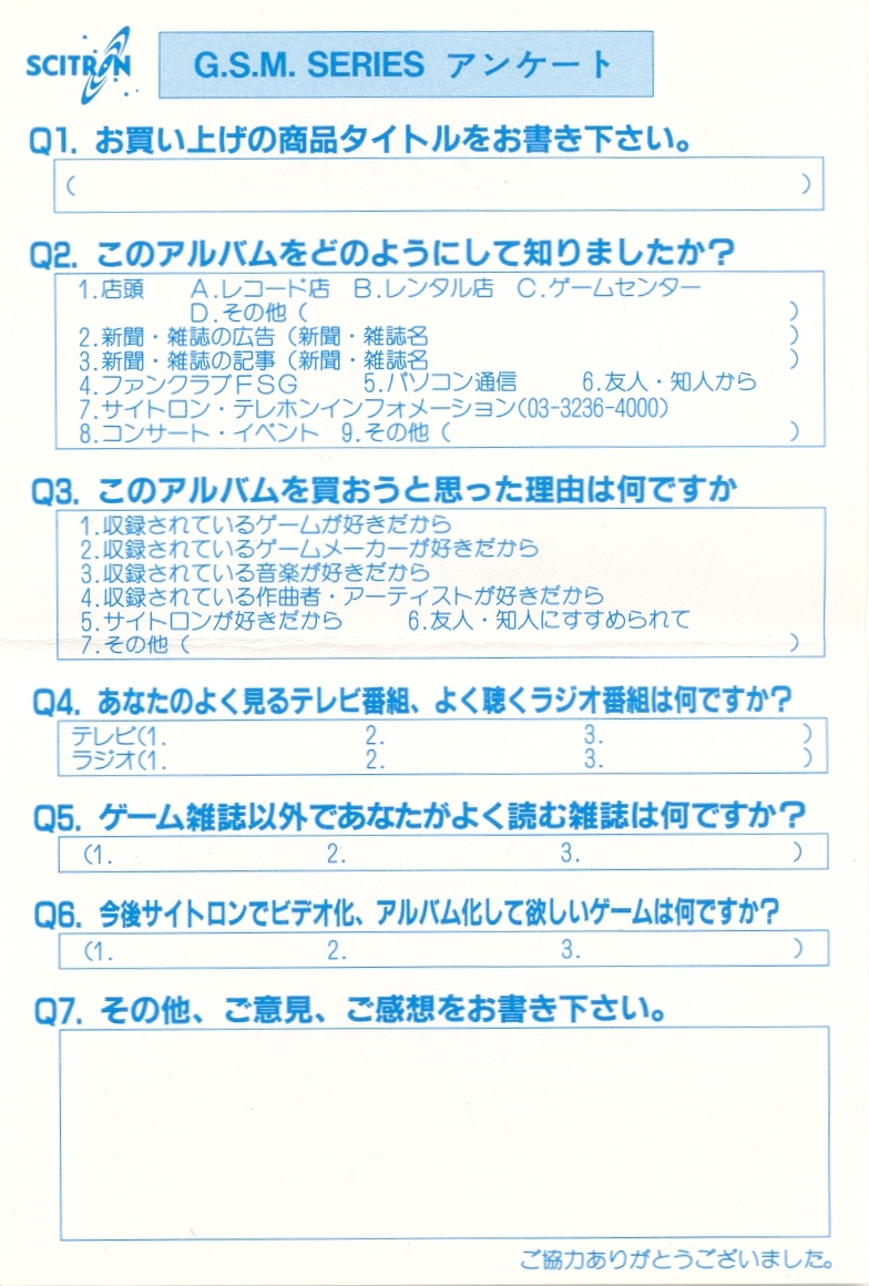 Rec Staff : TAKESHI HIGUCHI / SHINICHI YANATORI / KOUJI ITOH / SEIJI SUZUKI / KOHICHI MATSUMOTO