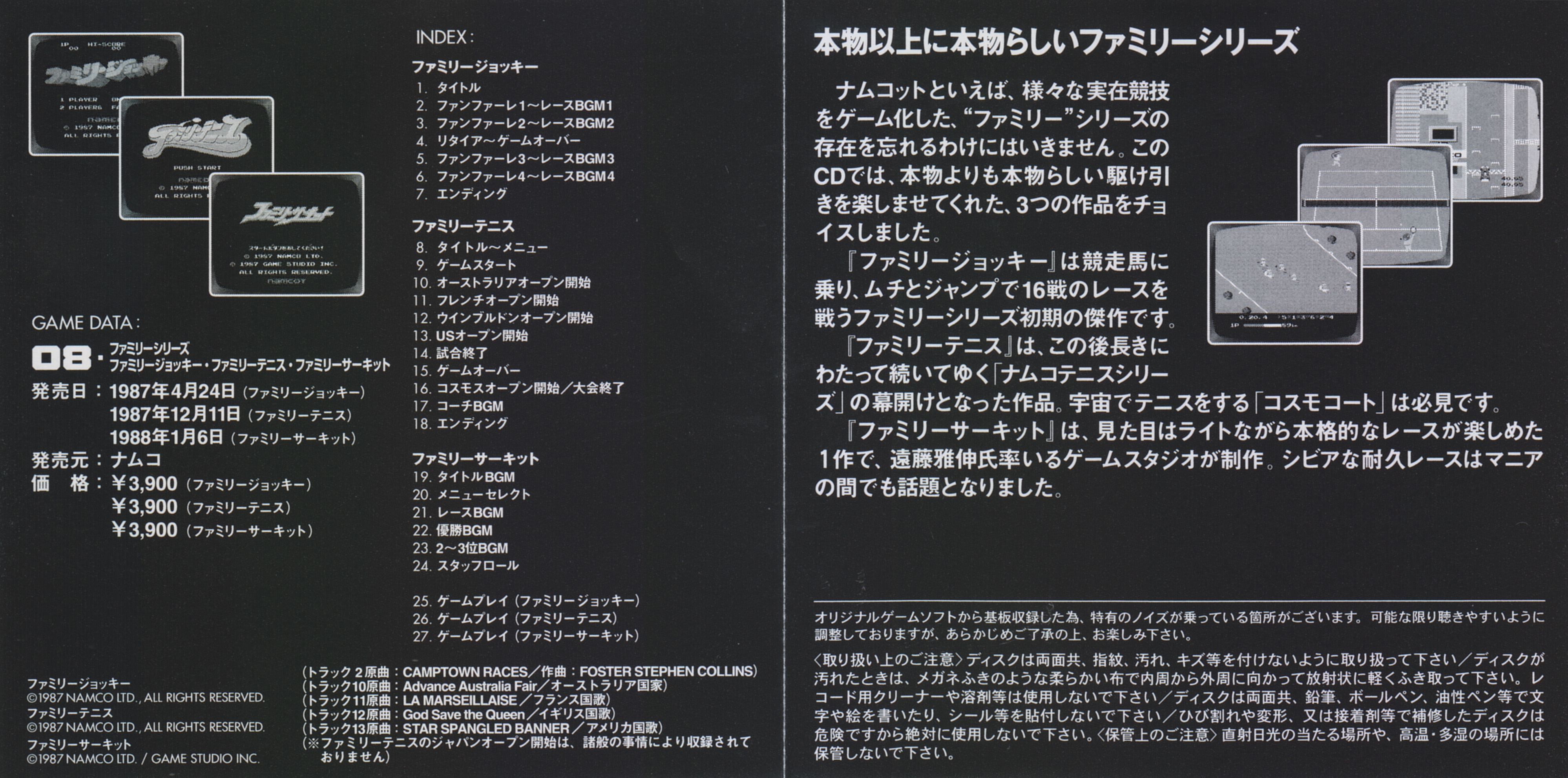 ゲームサウンドミュージアム ~ナムコット編~08 ファミリーシリーズ ファミリージョッキー・ファミリーテニス・ファミリーサーキット
