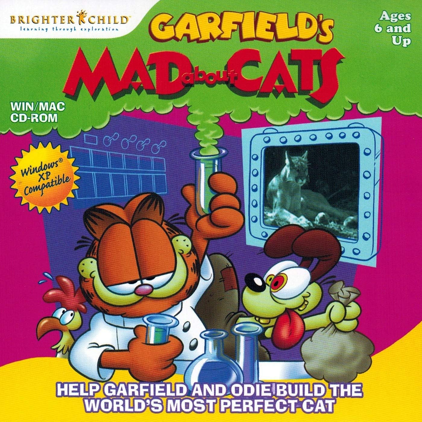 In Garfield's Mad About Cats, Jon expresses displeasure with Garfield's lack of motivation towards performing traditional rodent control duties. Still, Garfield is sympathetic to the mouse problem and assumes his alter-ego of Dr. Frankencat and, along with his assistant Eager (Odie), descends into the mad scientist lab in house dungeon. The mission: create the perfect cat. To that end, Dr. Frankencat uses his computer to identify the most perfect traits of various cats from around the planet and assemble the features into a perfect cat.