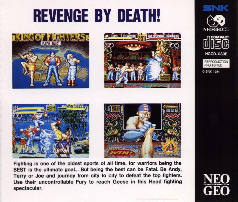 Fighting is one of the oldest sports of all time, for warriors being the BEST is the ultimate goal... But being the best can be Fatal. Be Andy, Terry or Joe and journey from city to city to defeat their top fighters. Use their uncontrollable Fury to reach Geese in this Head-to-Head fighting spectacular!