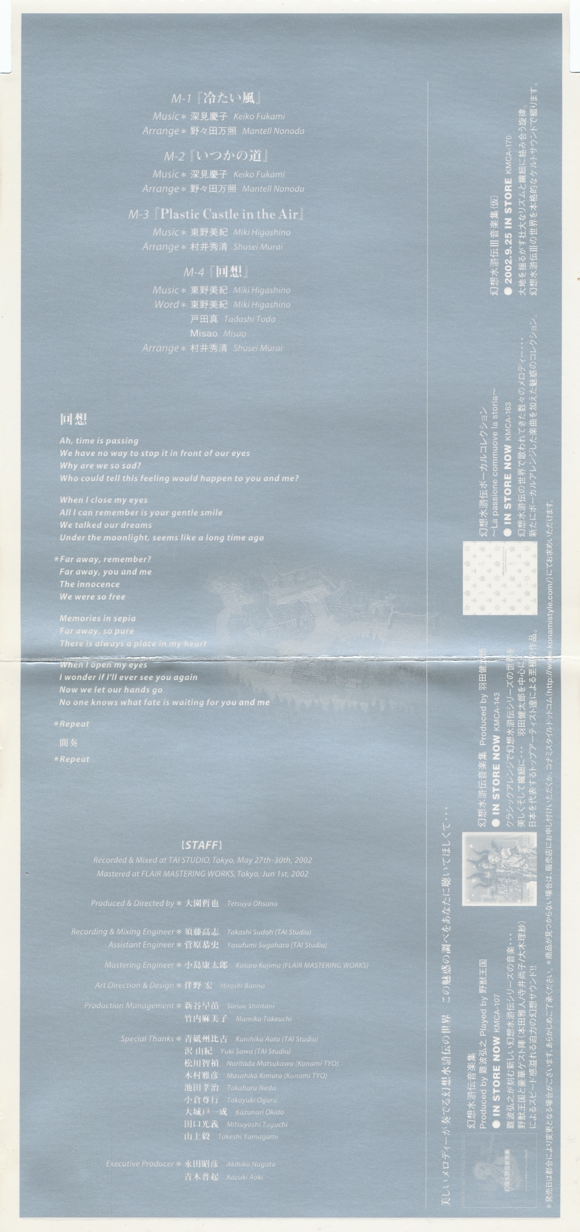 Recorded & Mixed at TAI STUDIO, Tokyo, May 27th-30th, 2002