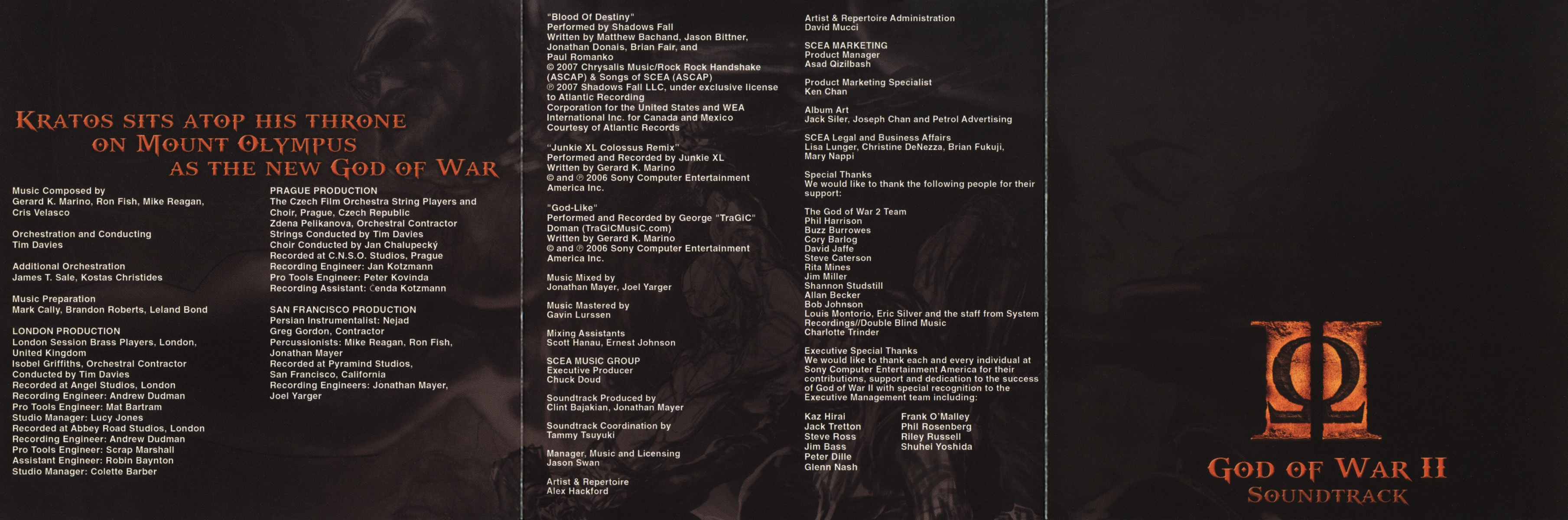 We would like to thank each and every individual at Sony Computer Entertainment America for their contributions, support and dedication to the success of God of War II with special recognition to the Executive Management team including: