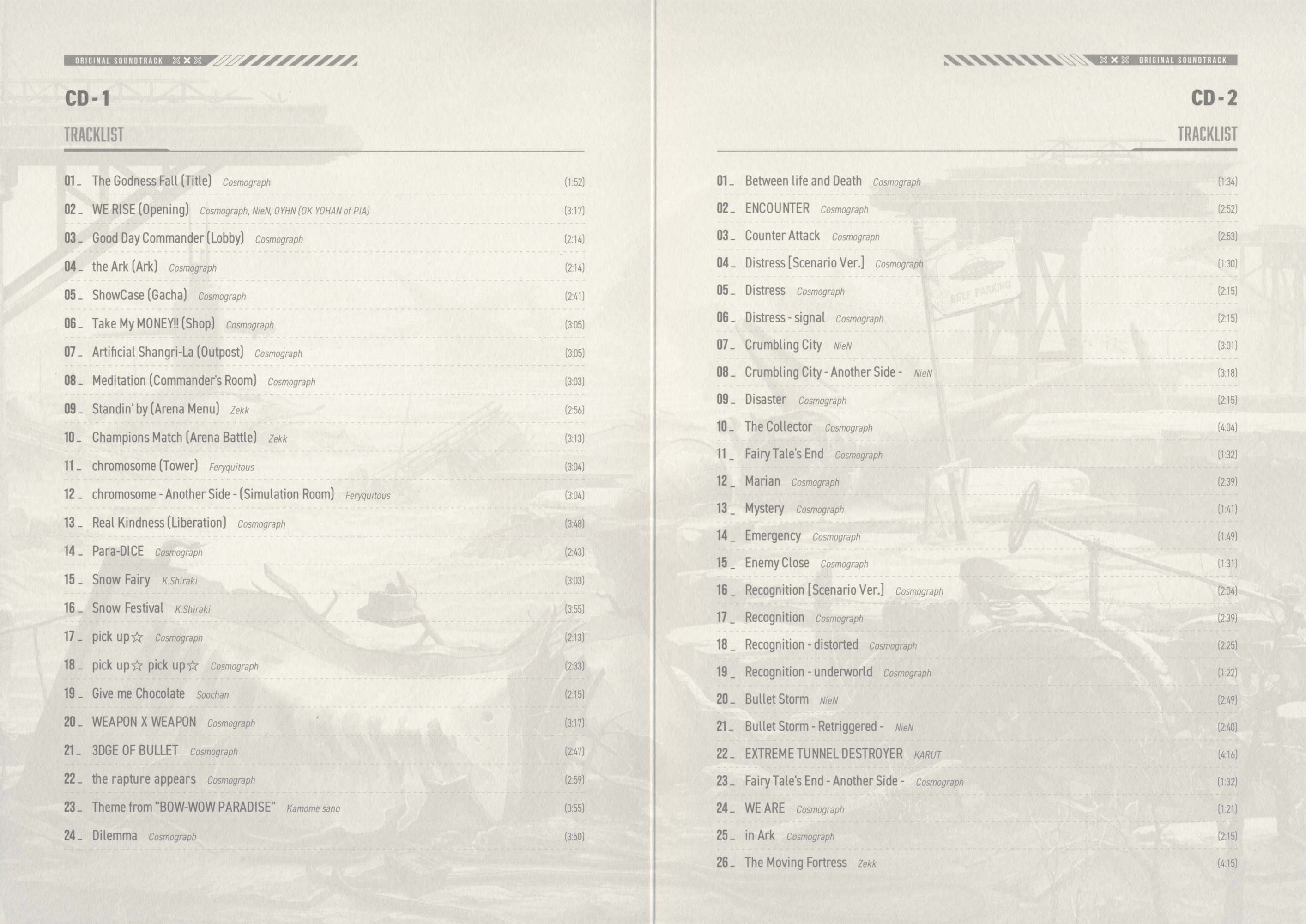 Cosmograph (Disc 1: 01, 03-08, 13, 14, 17, 18, 20-22, 24; Disc 2: 01-06, 09-19, 23-25)