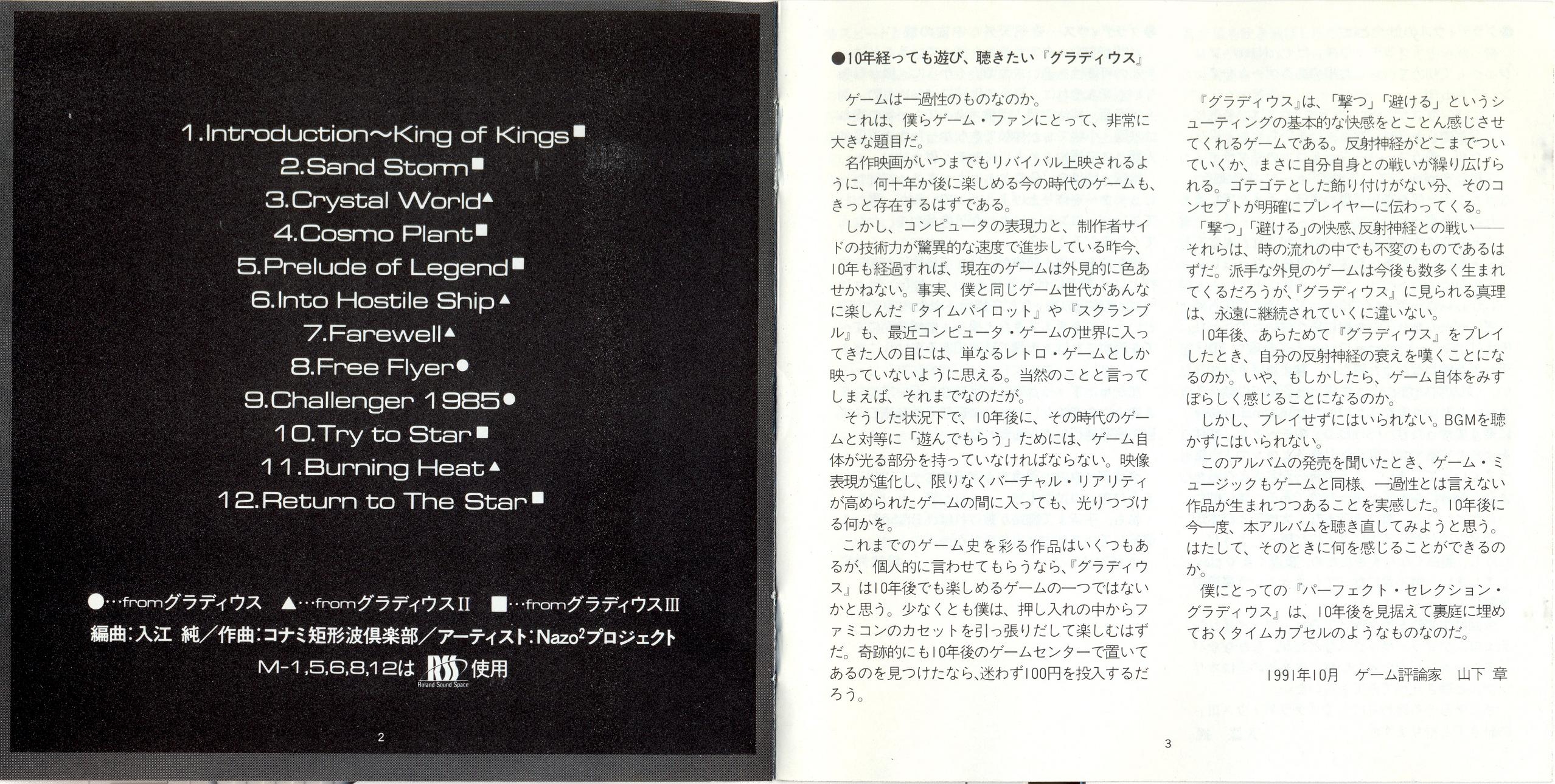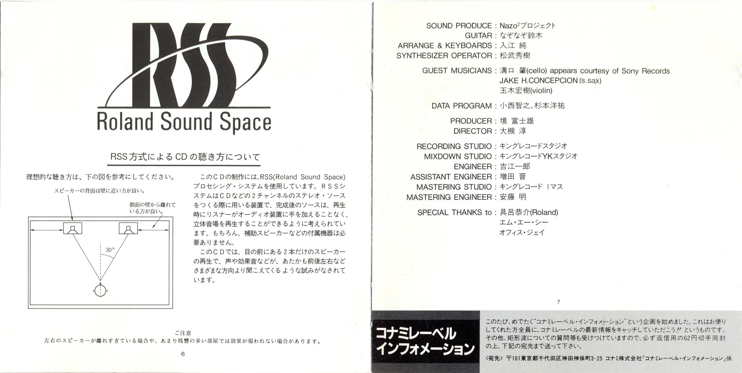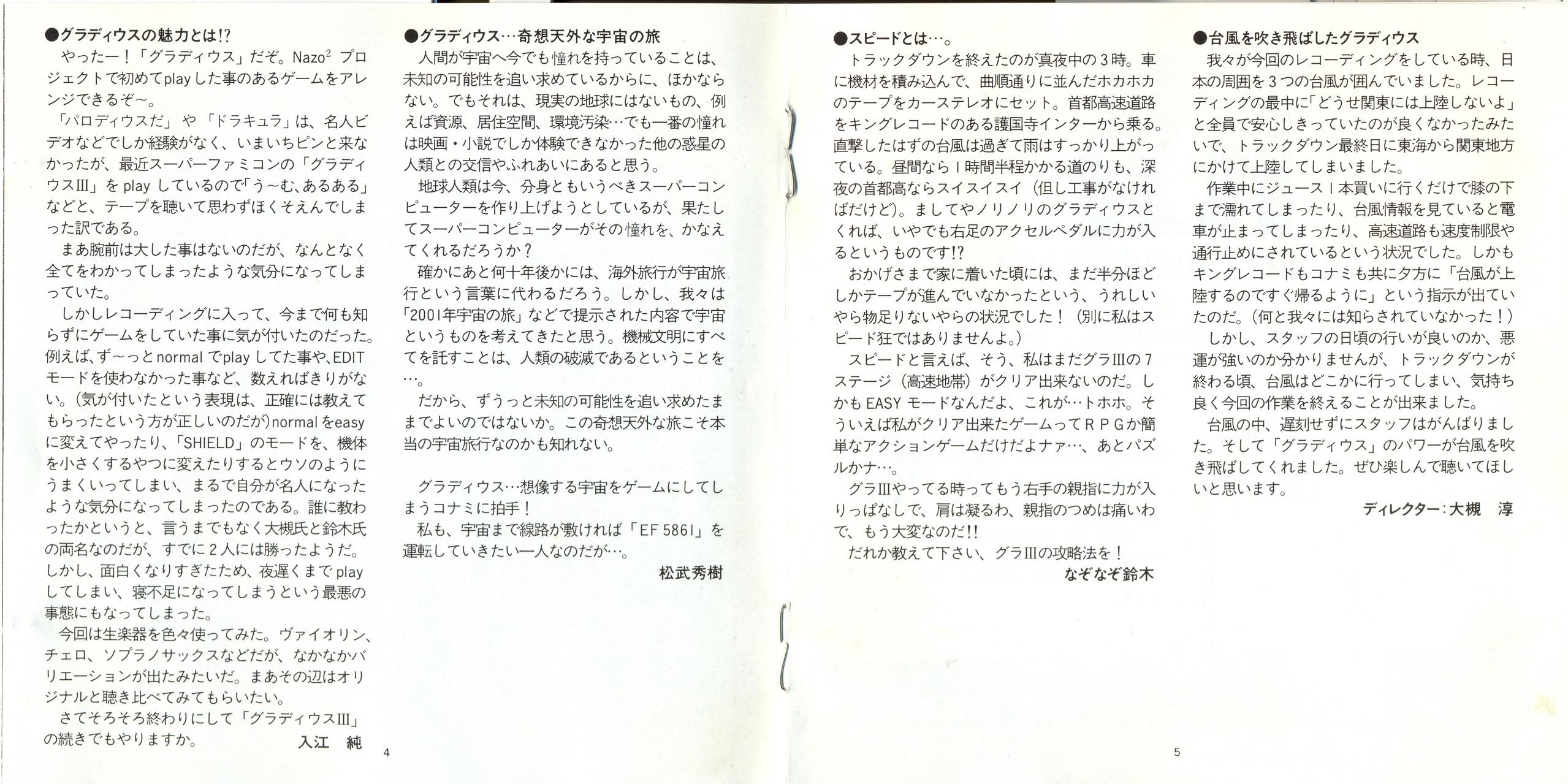 Liner Notes: Akira Yamashita (Game Critic) (pg. 3), Jun Irie (pg. 4), Hideki Matsutake (pg. 4), Nazo² Suzuki (pg. 5), Jun Otsuki (Director) (pg. 5)