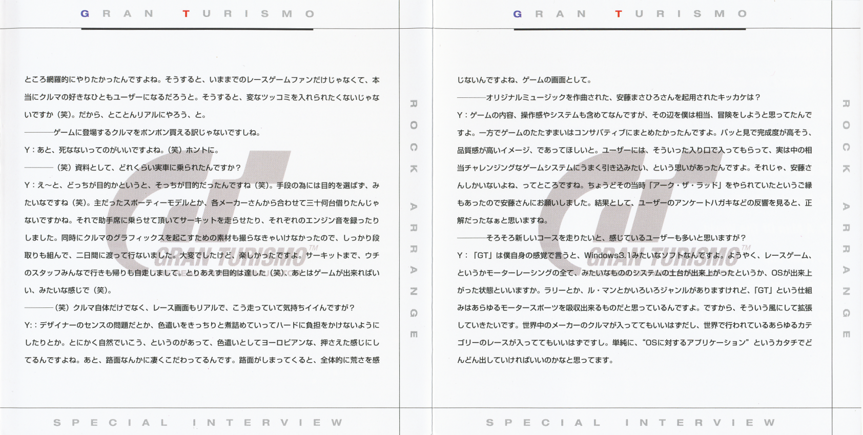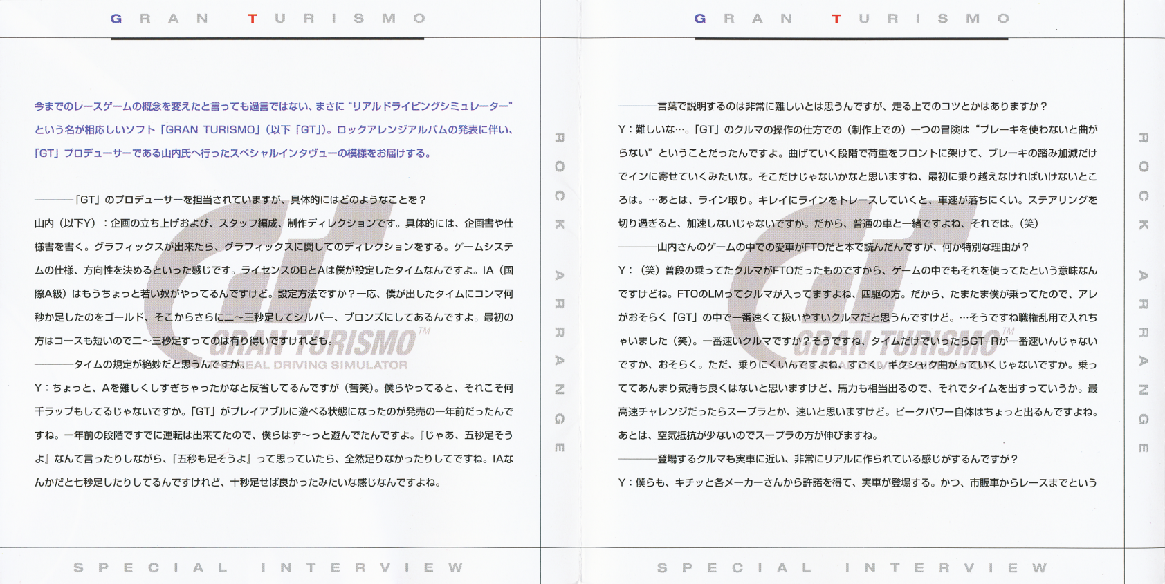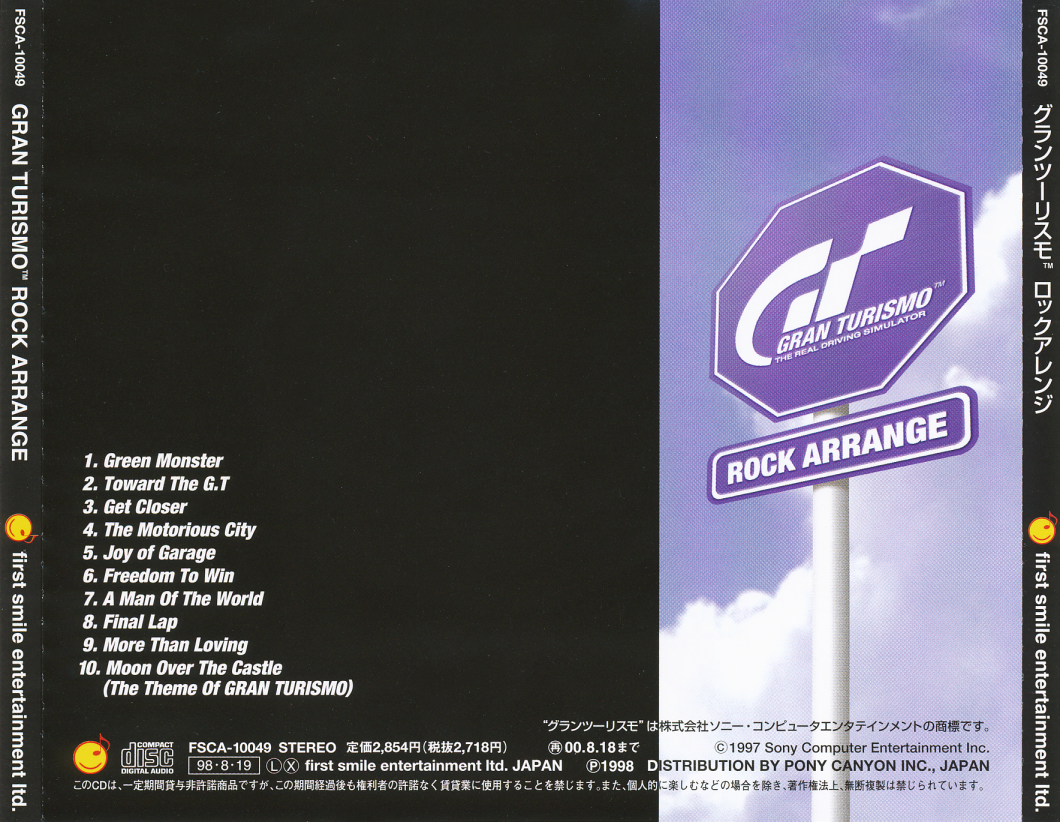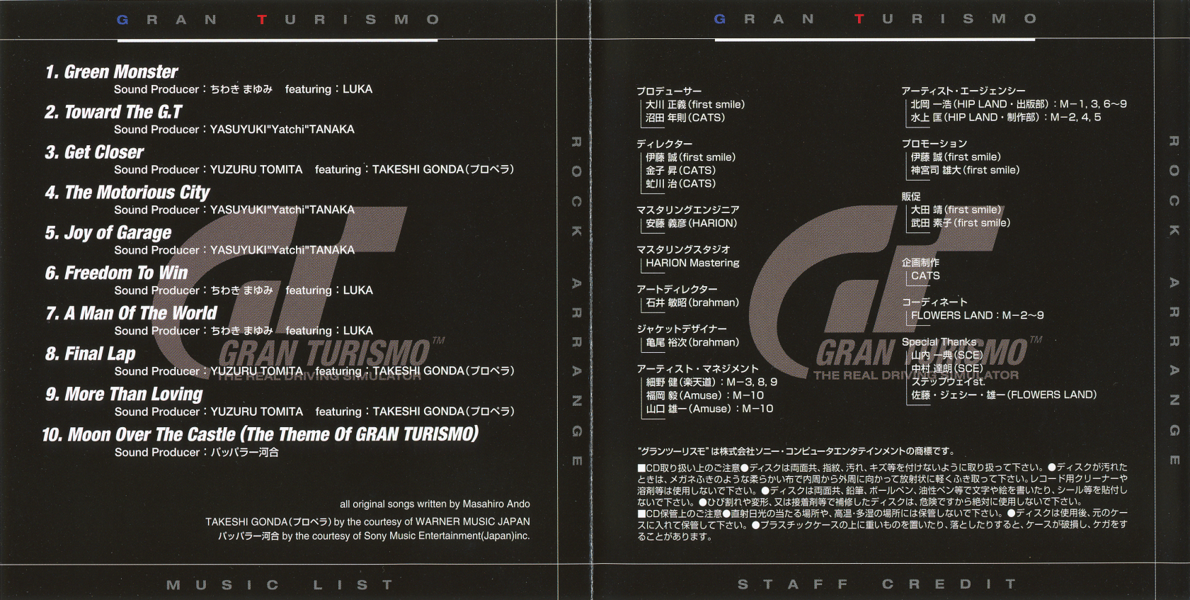 · NOTE: Although the booklet credits all compositions to Masahiro Ando, tracks 2, 4, 5 and 8, were composed by Isamu Ohira (as stated on the "GRAN TURISMO ORIGINAL GAME SOUNDTRACK" credits).