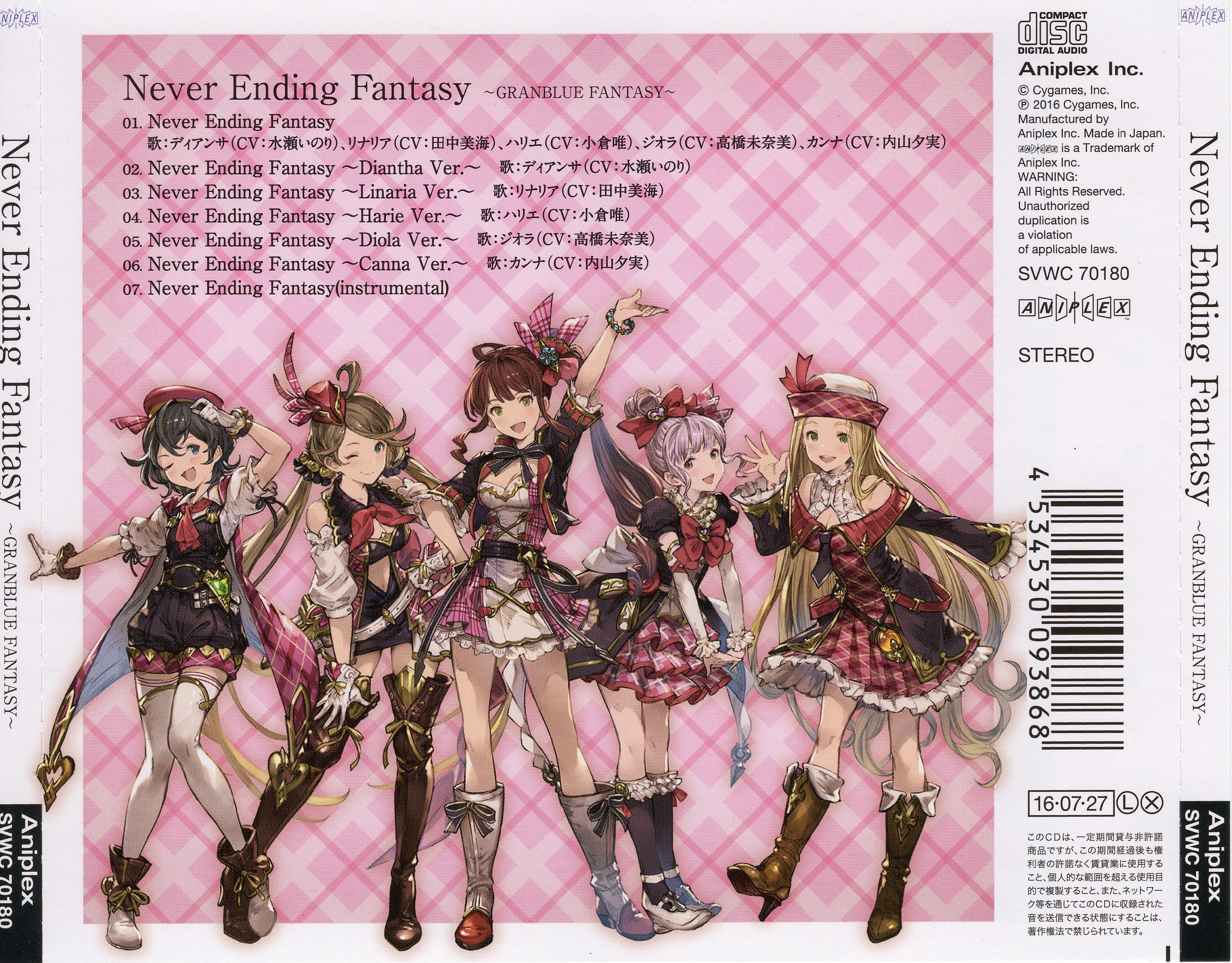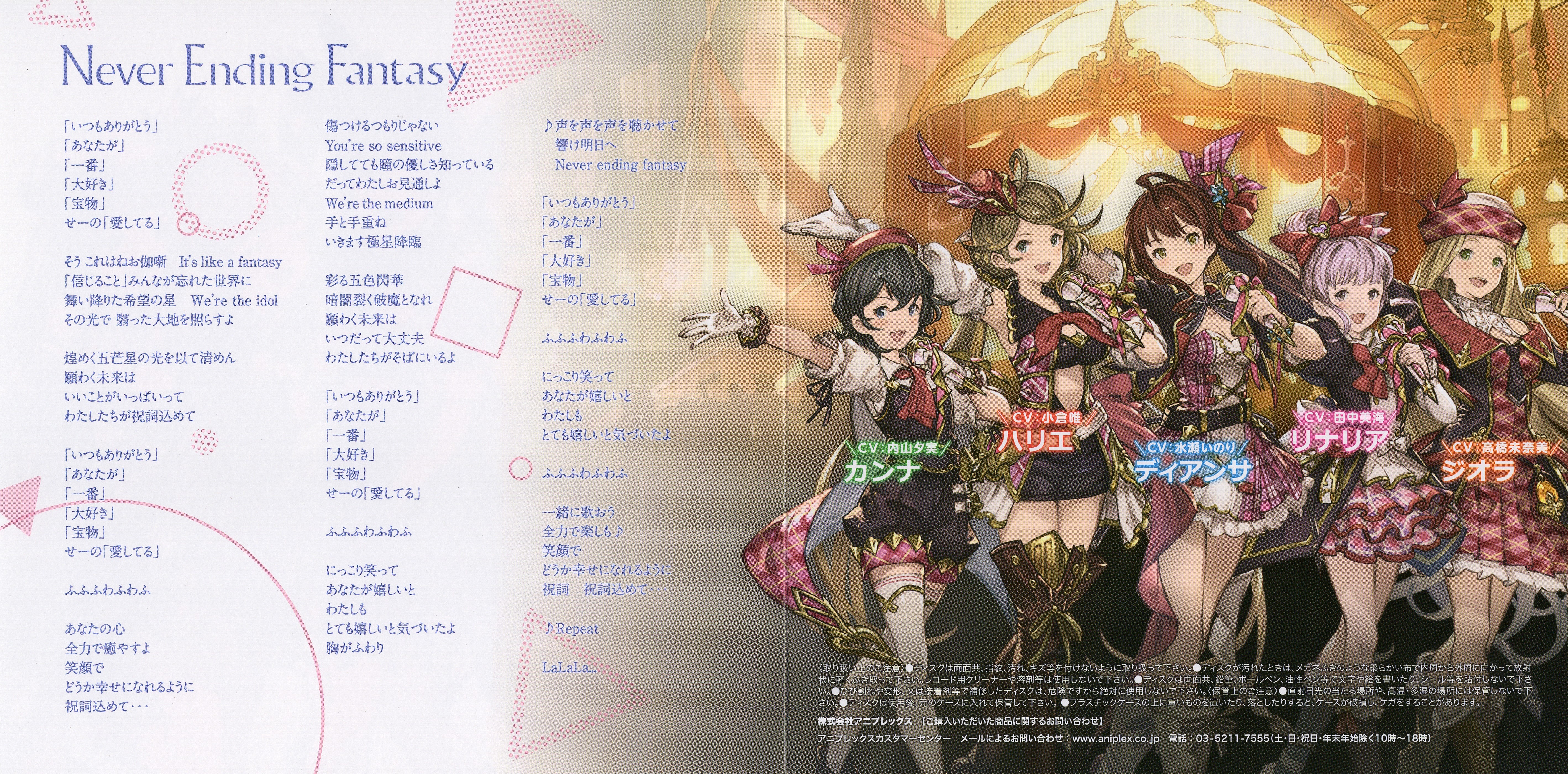 M-01: Diantha (CV: Inori Minase), Linaria (CV: Minami Tanaka), Harie (CV: Yui Ogura), Diola (CV: Minami Takahashi), Canna (CV: Yumi Uchiyama)
