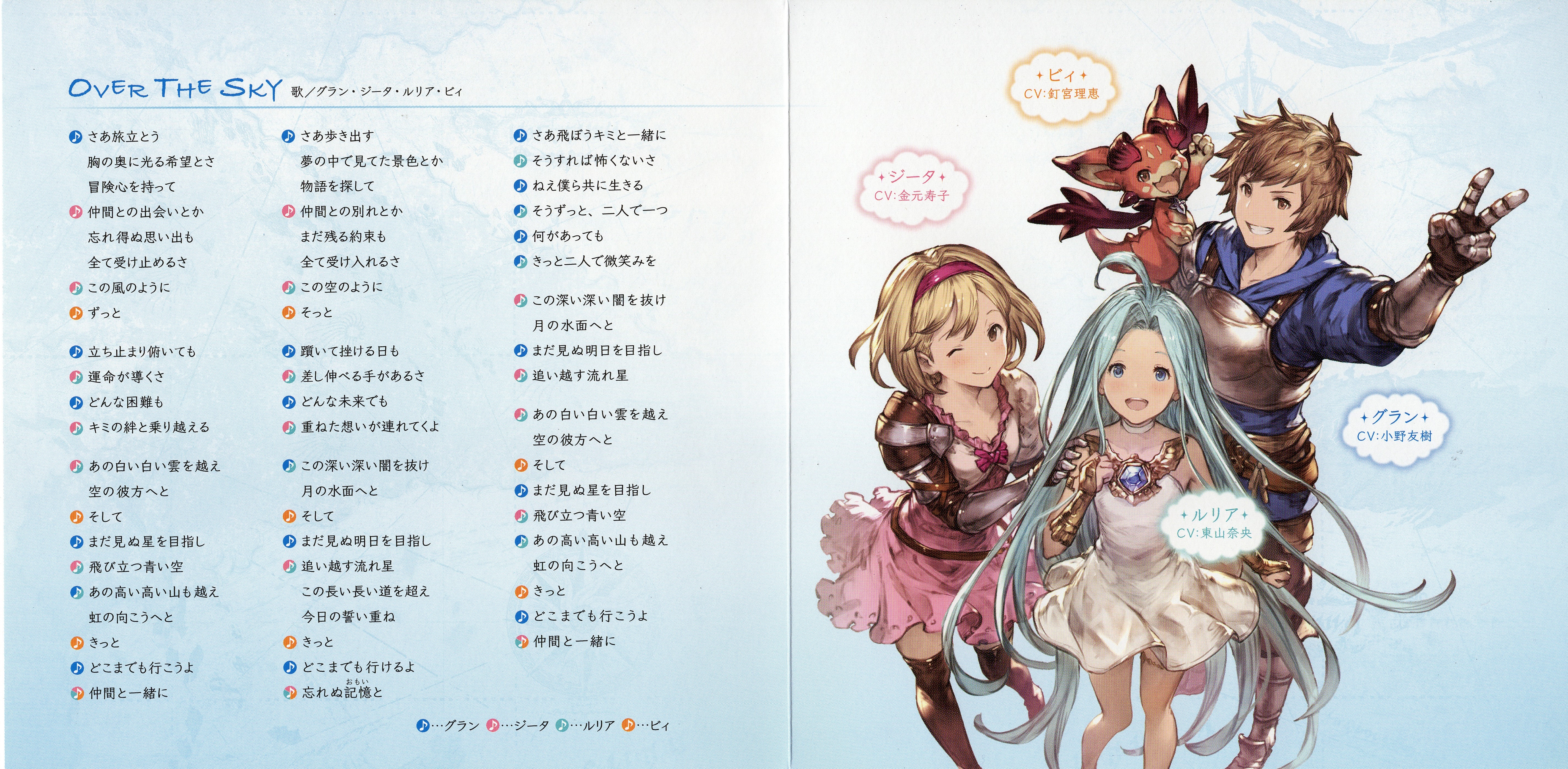 M-01: Gran (CV: Yuki Ono), Djeeta (CV: Hisako Kanemoto), Lyria (CV: Nao Toyama), Vyrn (CV: Rie Kugimiya)