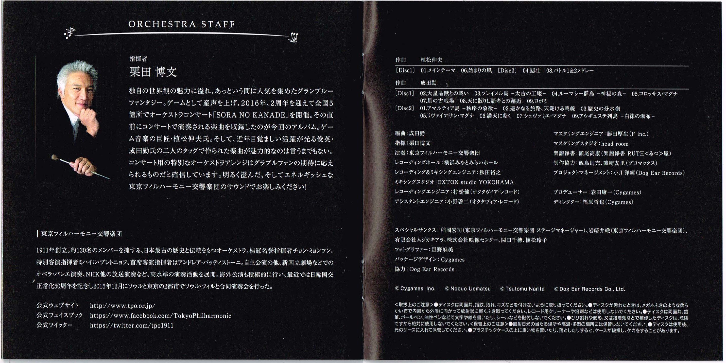 Special Thanks: Hiroshi Inaoka (Tokyo Philharmonic Orchestra Stage Manager), Iori Iwasaki (Tokyo Philharmonic Orchestra), Musica Chiara Management, Ltd., Audio Visual Communications Ltd., Chiho Sekiguchi, Reiko Uematsu