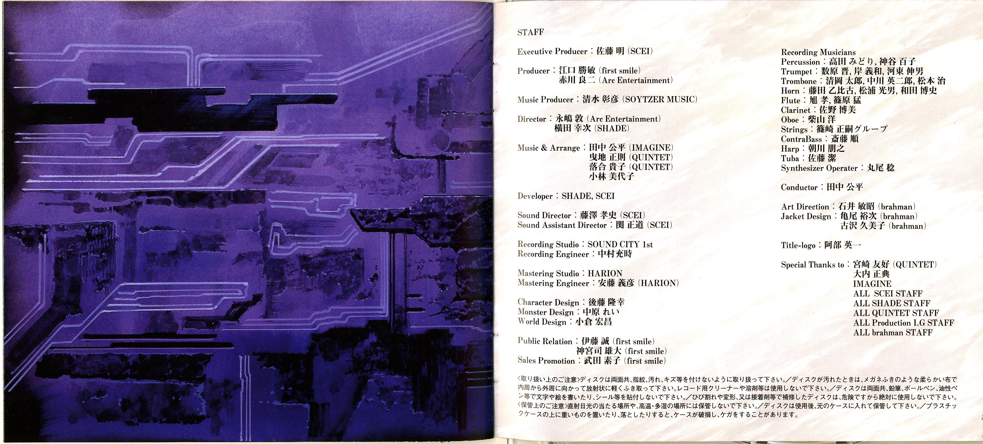 Special Thanks to: Tomoyoshi Miyazaki (QUINTET), Masanori Oouchi, IMAGINE, ALL SCEI STAFF, ALL SHADE STAFF, ALL QUINTET STAFF, ALL Production I.G STAFF, ALL brahman STAFF