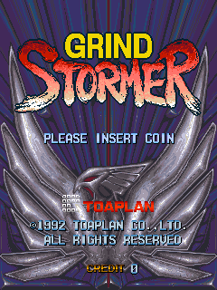 Grind Stormer is a science fiction-themed vertically scrolling shoot 'em up game where players assume the role of a young secret agent assigned by the government taking control of the NA-00 space fighter craft through six stages in an effort to defeat the titular VR game, rescue the abducted players who lost against it and unveil its true purpose as the main objective.